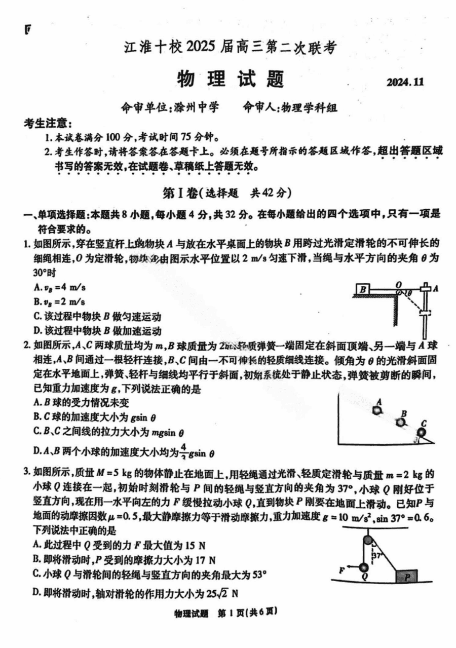 江淮十校2025届高三第二次联考物理试题及答案 时间:2024-11-17 02:11 安徽 理综试题 安徽江淮十校2025届高三第二次联考物理考试已于近日开考,为方便考生考后及时查看考试情况,查漏补缺、弥补不足,本文整理了试题答案解析相关信息! 汇总:江淮十校2025届高三第二次联考试题及答案汇总 物理试题及答案解析