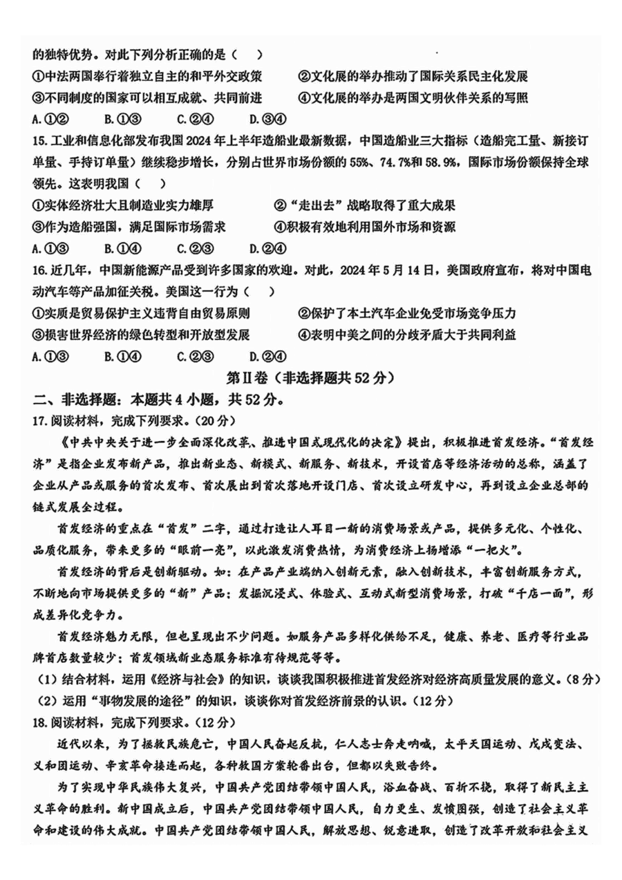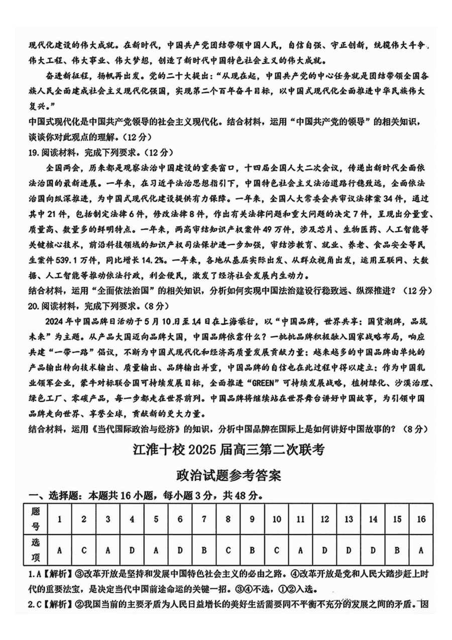 江淮十校2025届高三第二次联考政治试题及答案 时间:2024-11-17 02:11 安徽 文综试题 安徽江淮十校2025届高三第二次联考政治考试已于近日开考,为方便考生考后及时查看考试情况,查漏补缺、弥补不足,本文整理了试题答案解析相关信息! 汇总:江淮十校2025届高三第二次联考试题及答案汇总 政治试题及答案解析