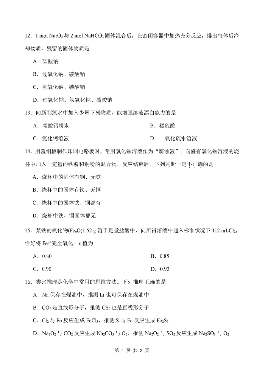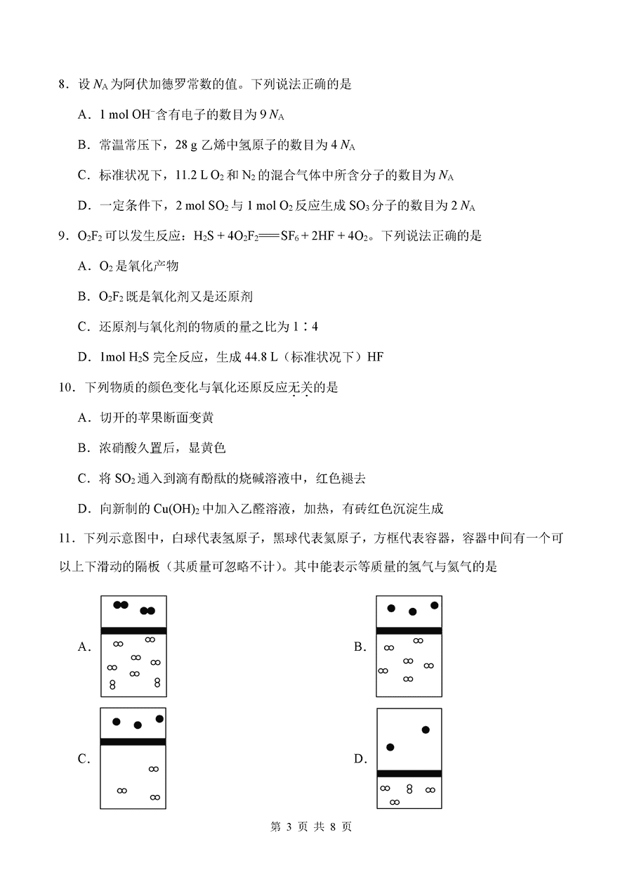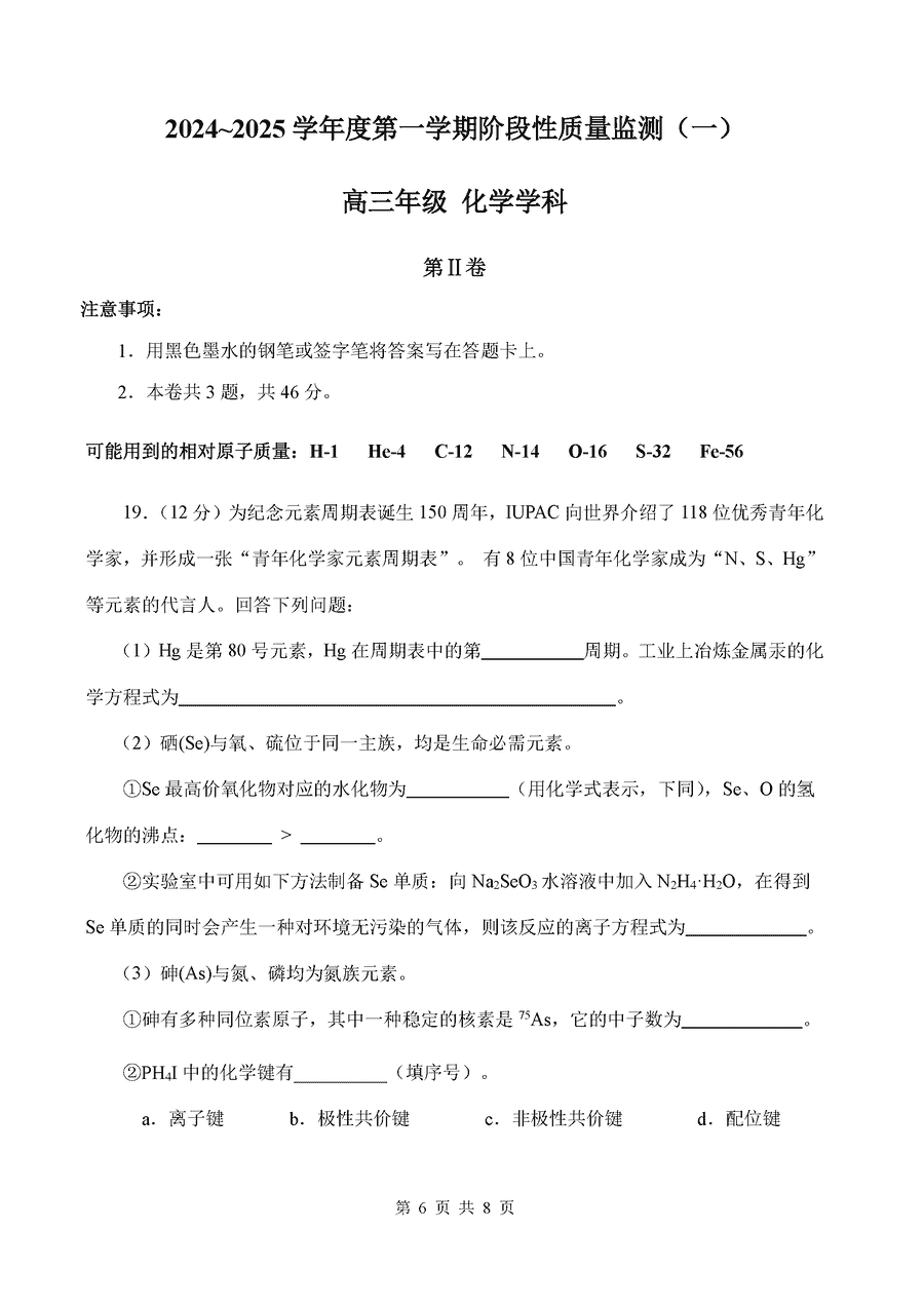 天津市南开区2024-2025学年高三上11月期中化学试题及答案