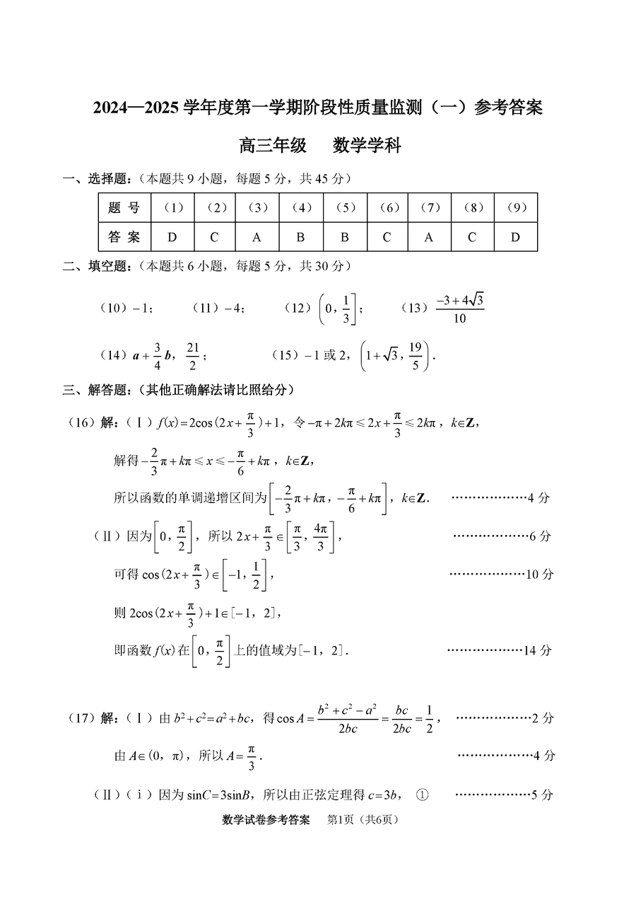 天津市南开区2024-2025学年高三上11月期中数学试题及答案