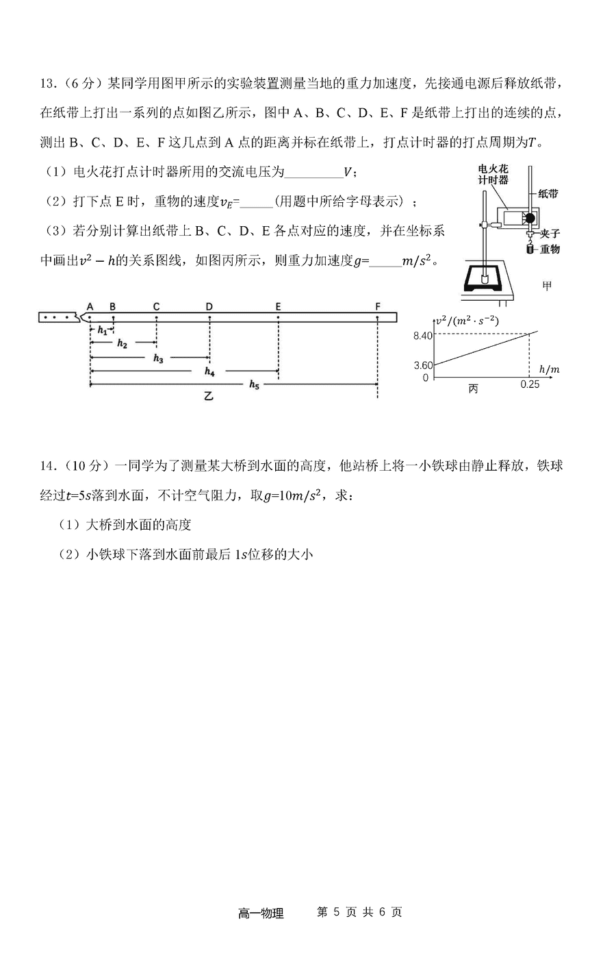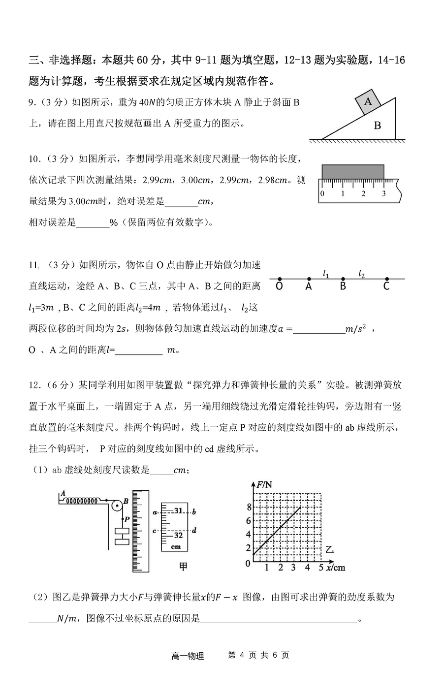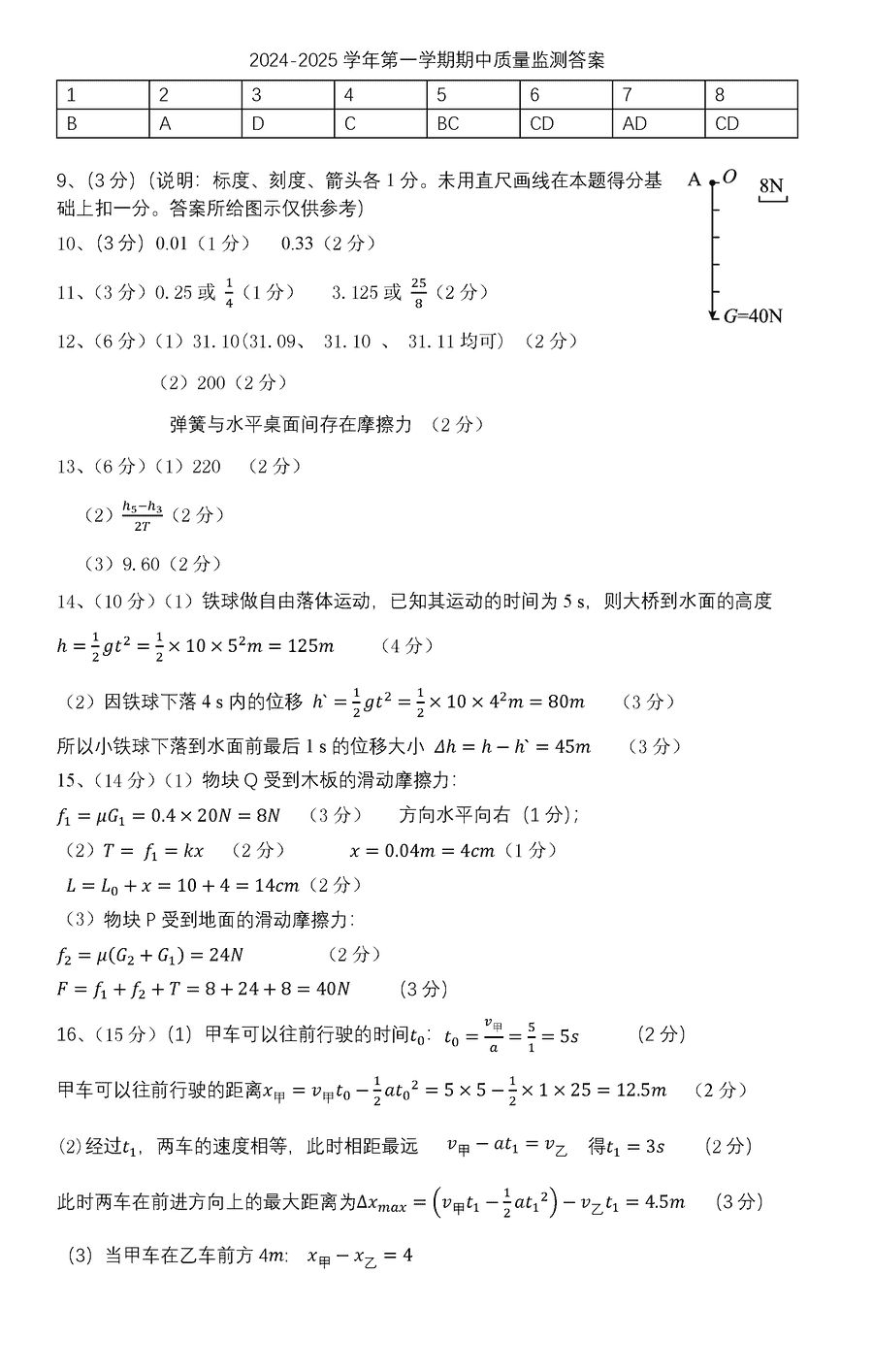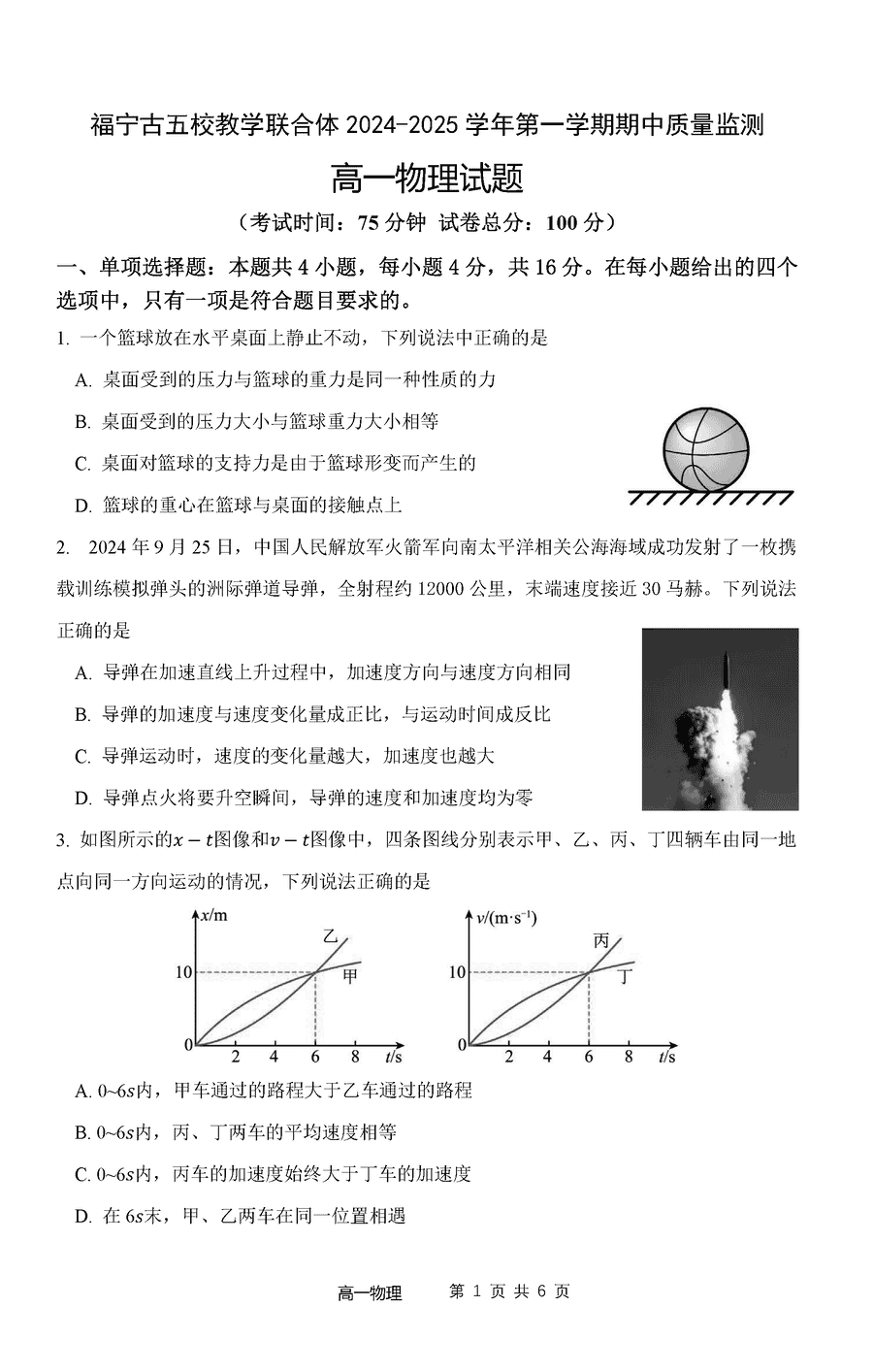 福宁古五校教学联合体2024-2025学年高一上学期期中物理试题及答案