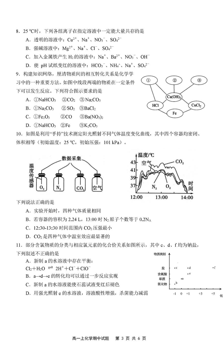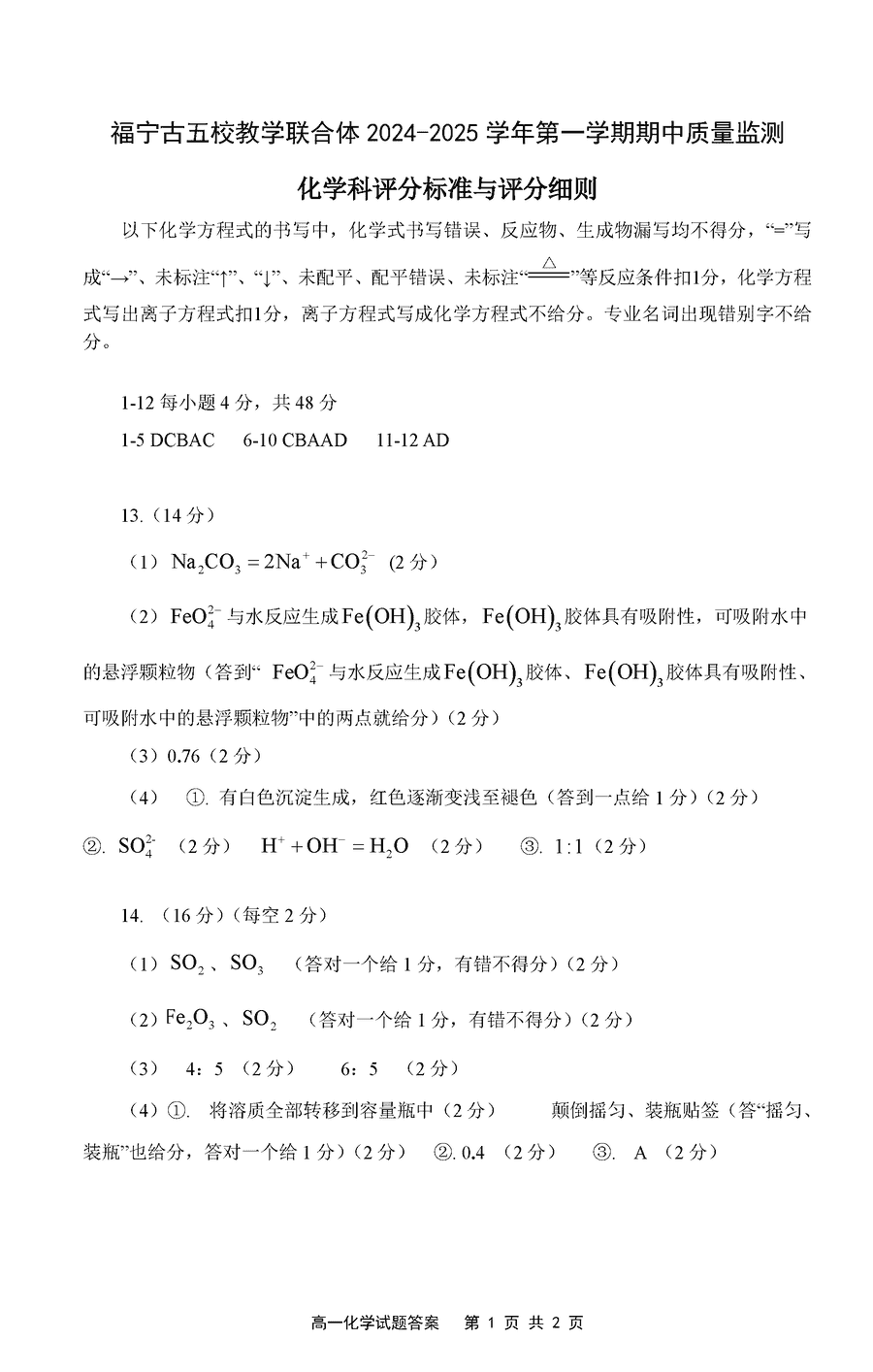 福宁古五校教学联合体2024-2025学年高一上学期期中化学试题及答案