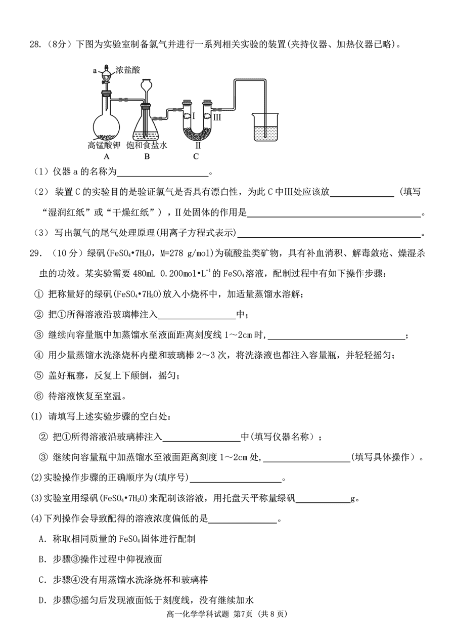 化学试题及答案解析