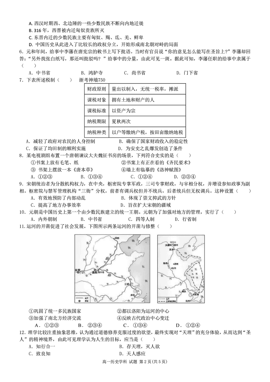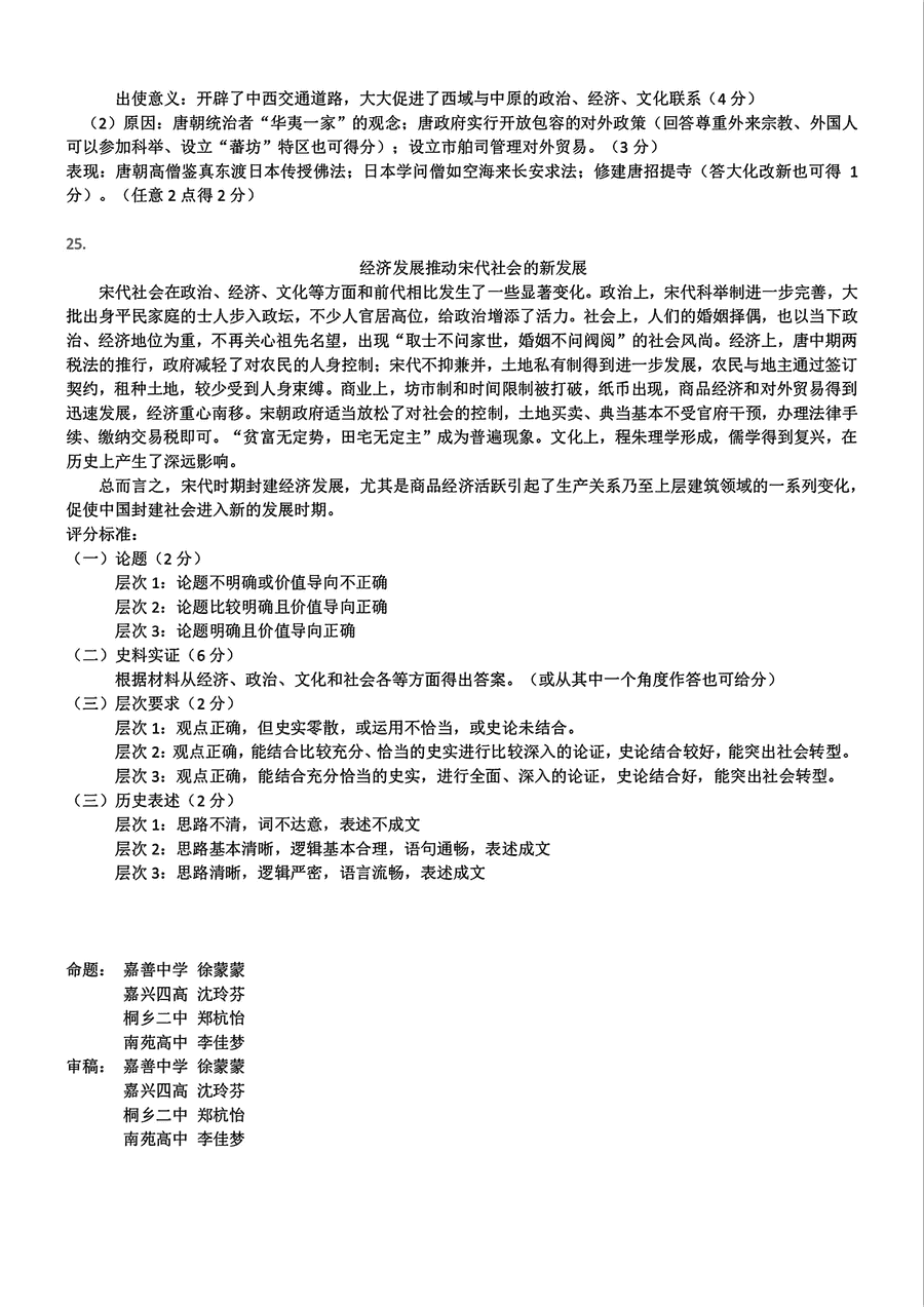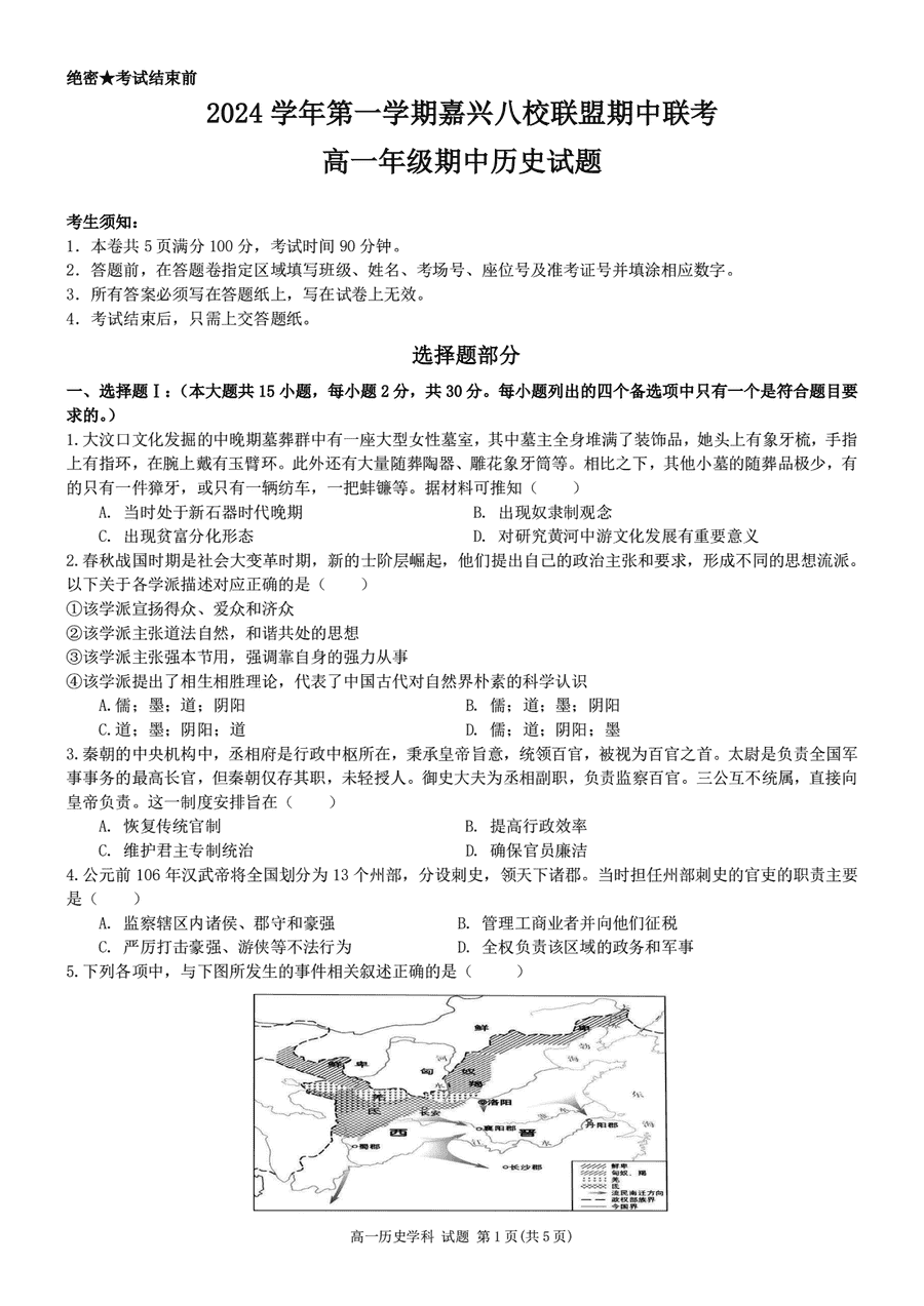 嘉兴八校2024-2025学年高一期中历史试题及答案