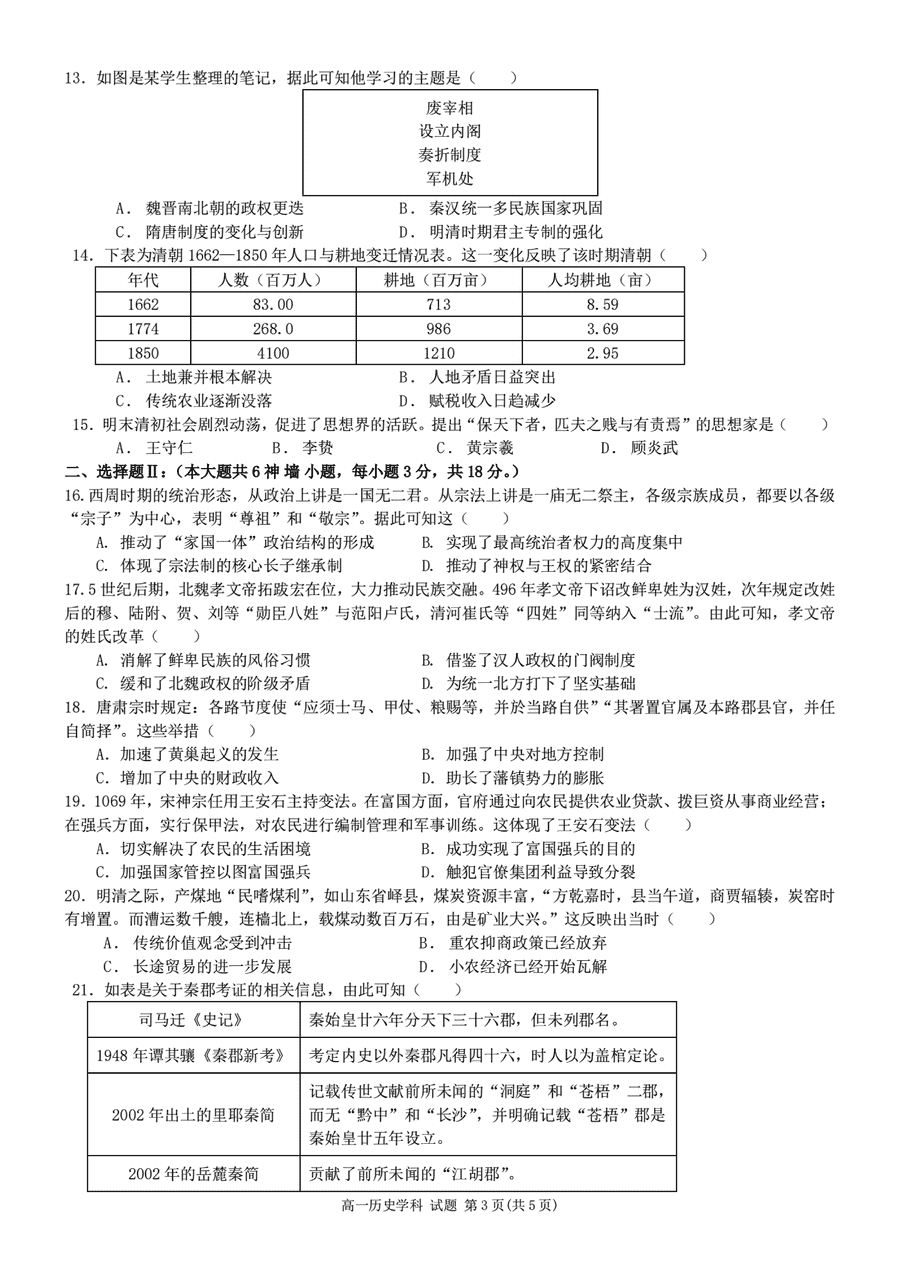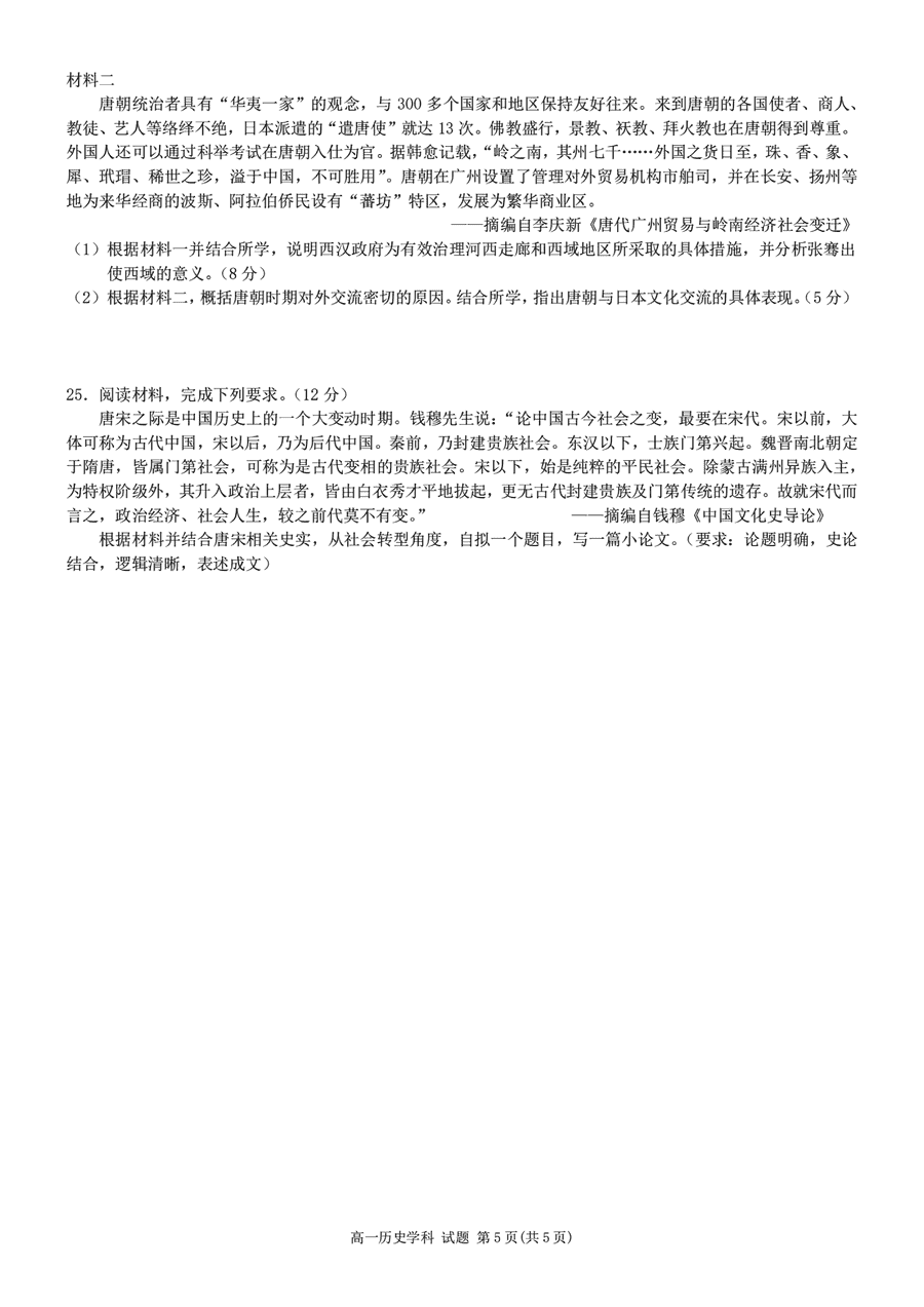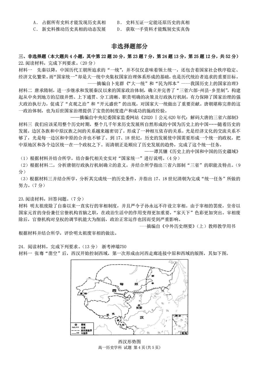 嘉兴八校2024-2025学年高一期中历史试题及答案