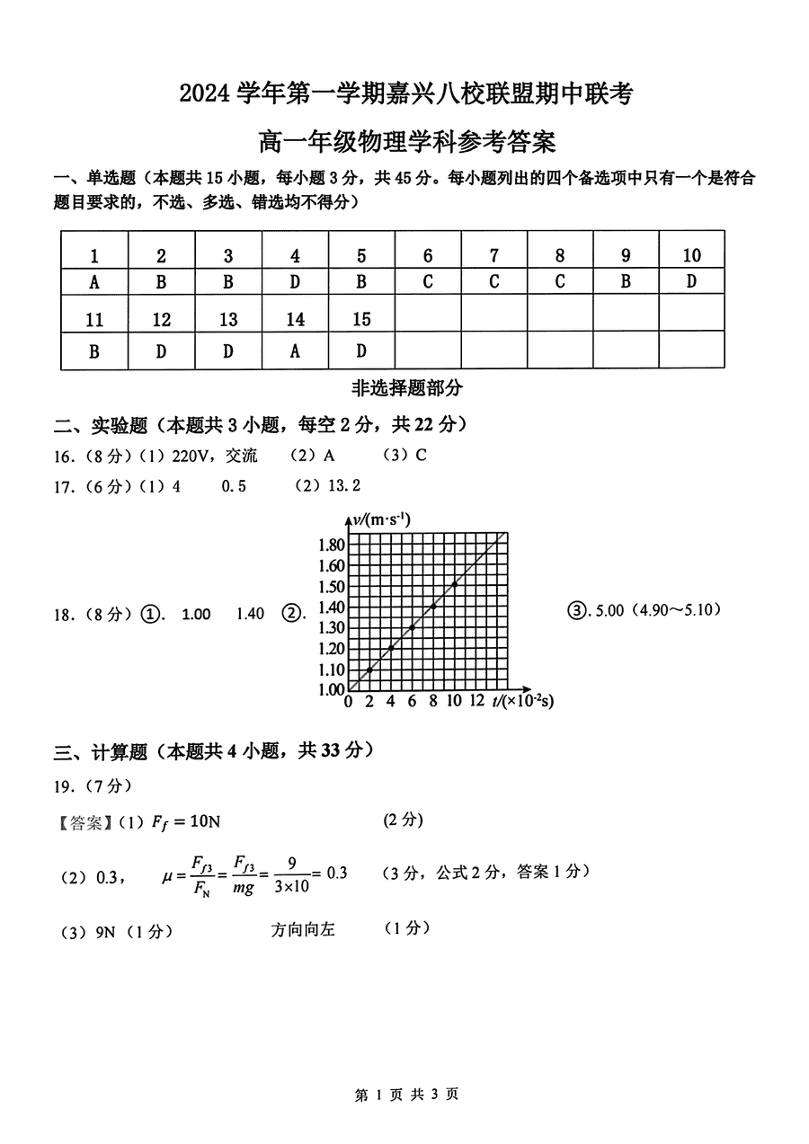 浙江省嘉兴八校2024-2025学年高一期中物理考试已于近日开考,为方便考生考后及时查看考试情况,查漏补缺、弥补不足,本文整理了试题答案解析相关信息!