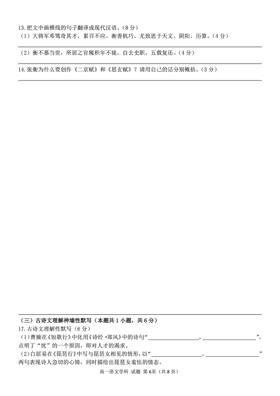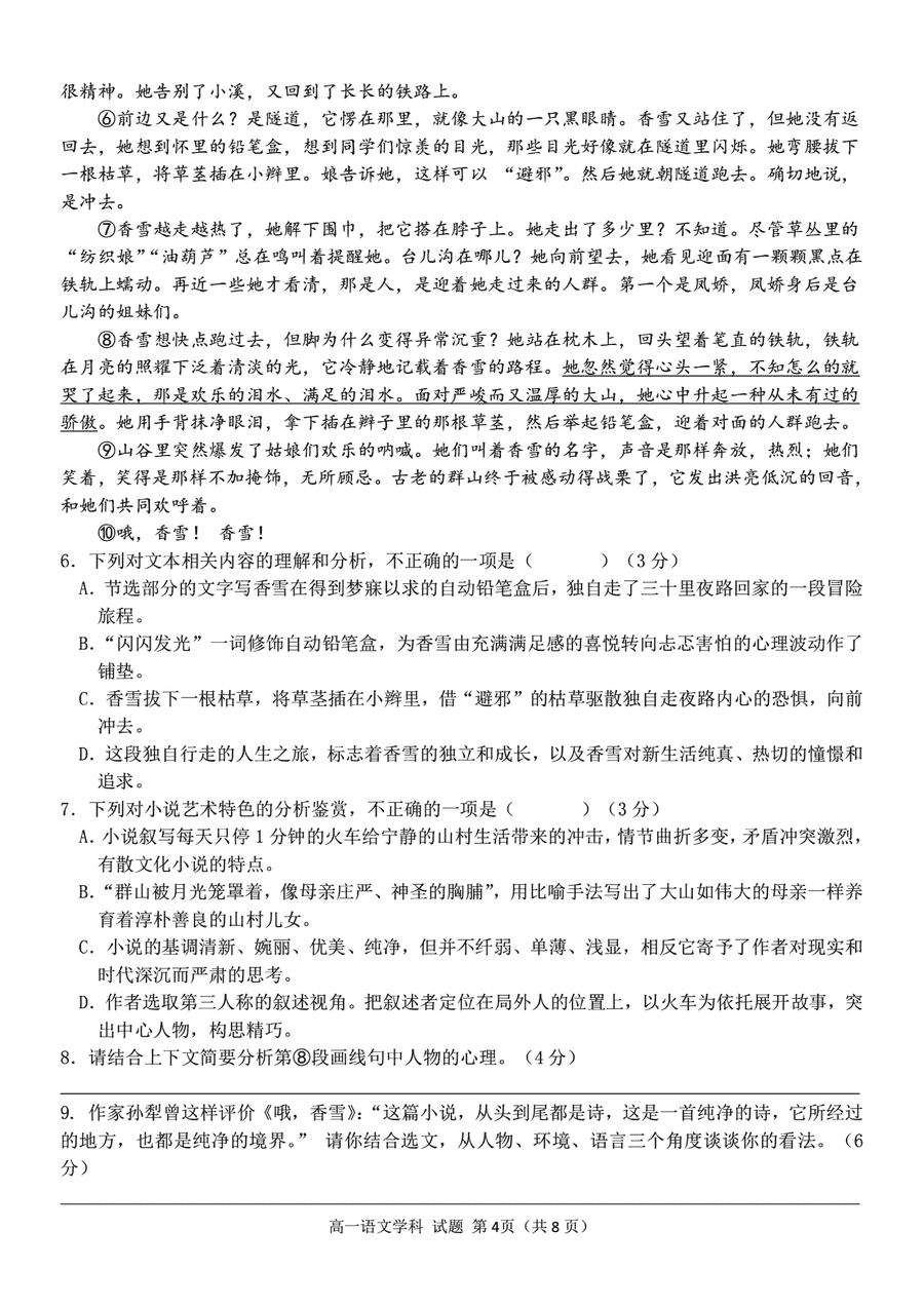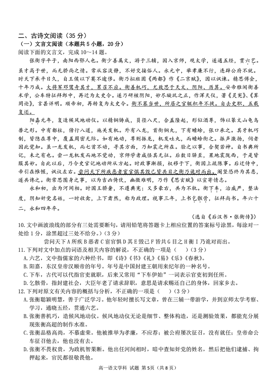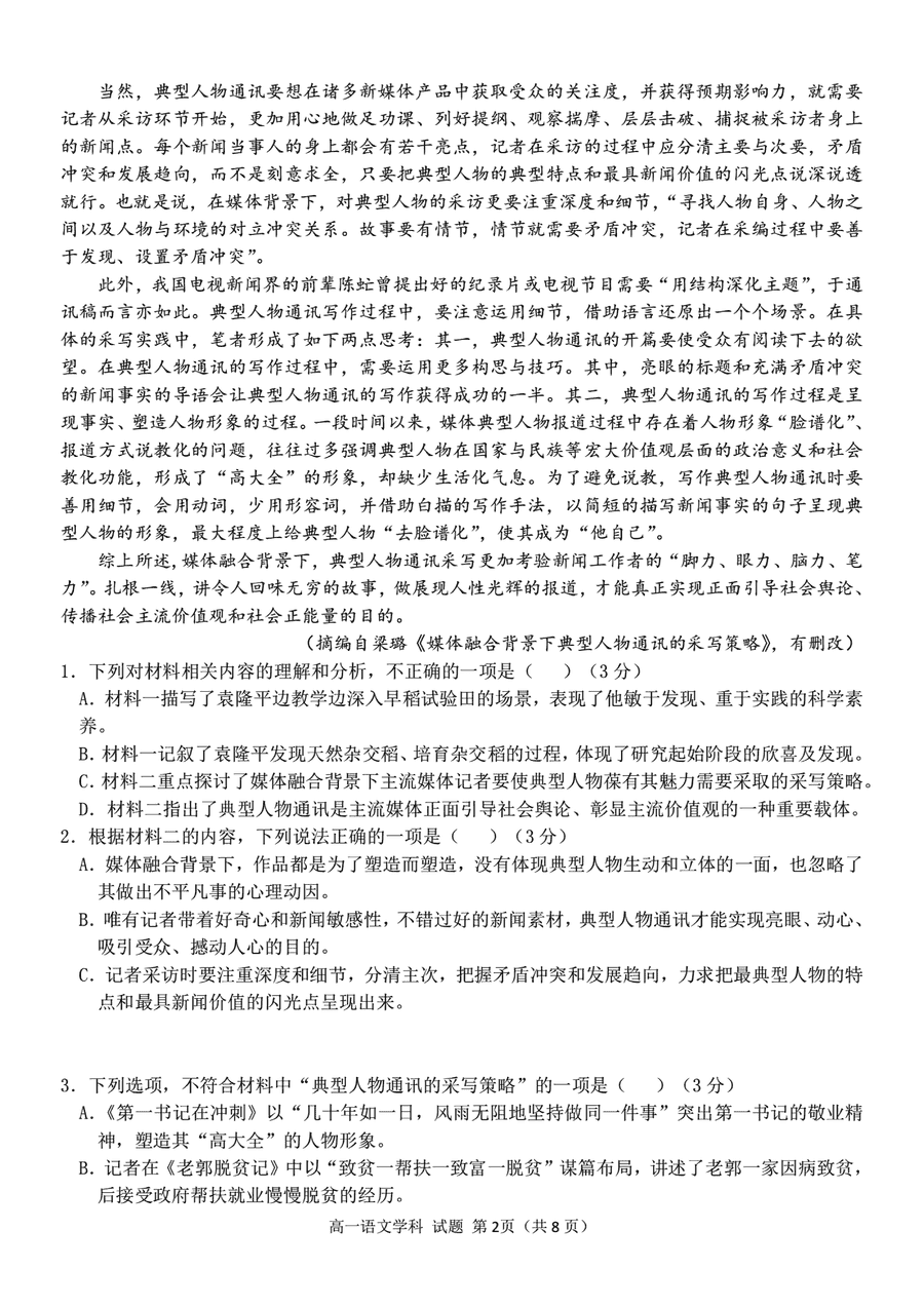 嘉兴八校2024-2025学年高一期中语文试题及答案