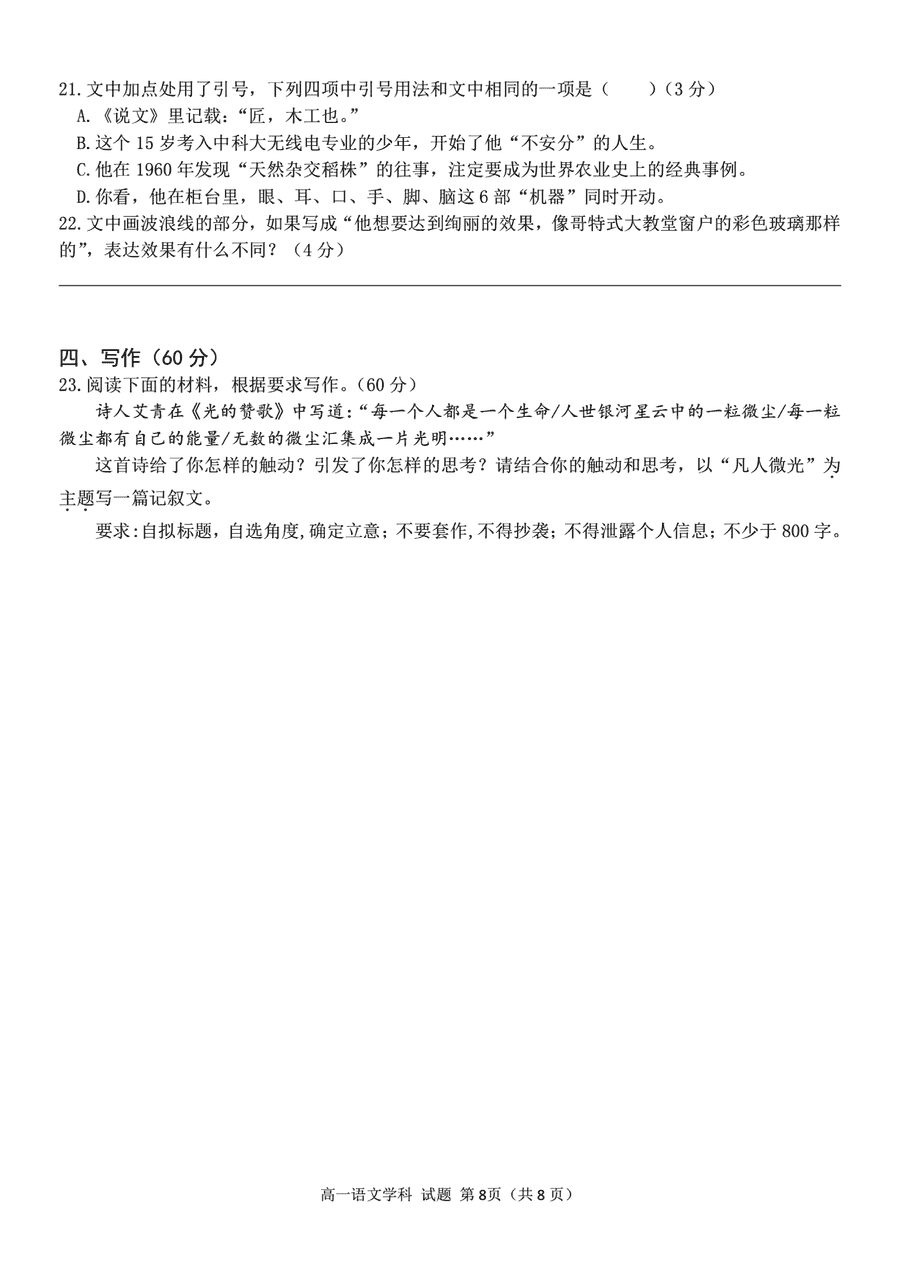浙江省嘉兴八校2024-2025学年高一期中语文考试已于近日开考,为方便考生考后及时查看考试情况,查漏补缺、弥补不足,本文整理了试题答案解析相关信息!