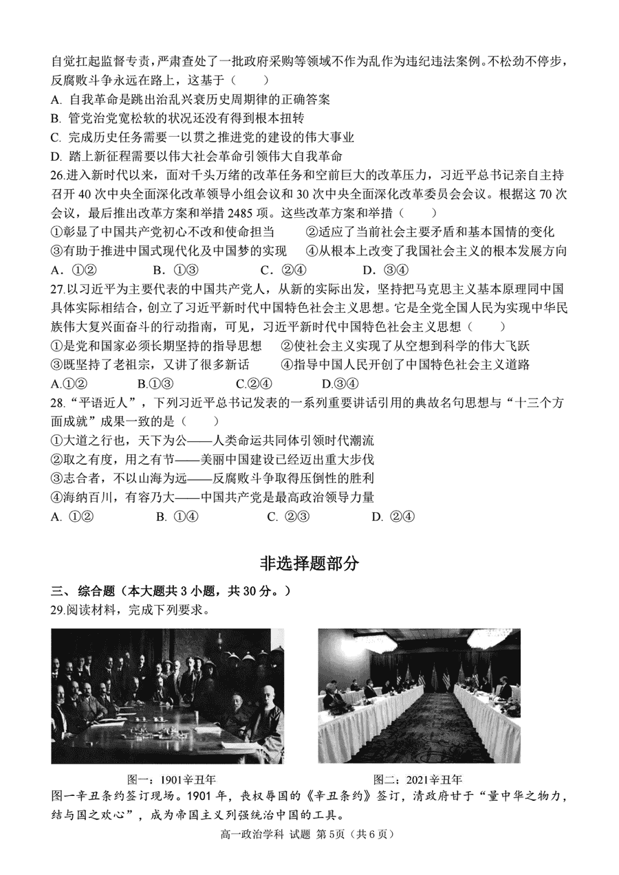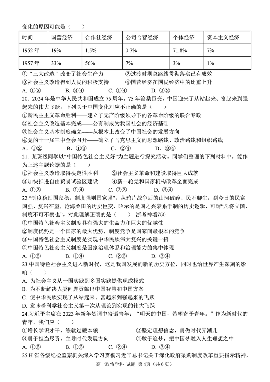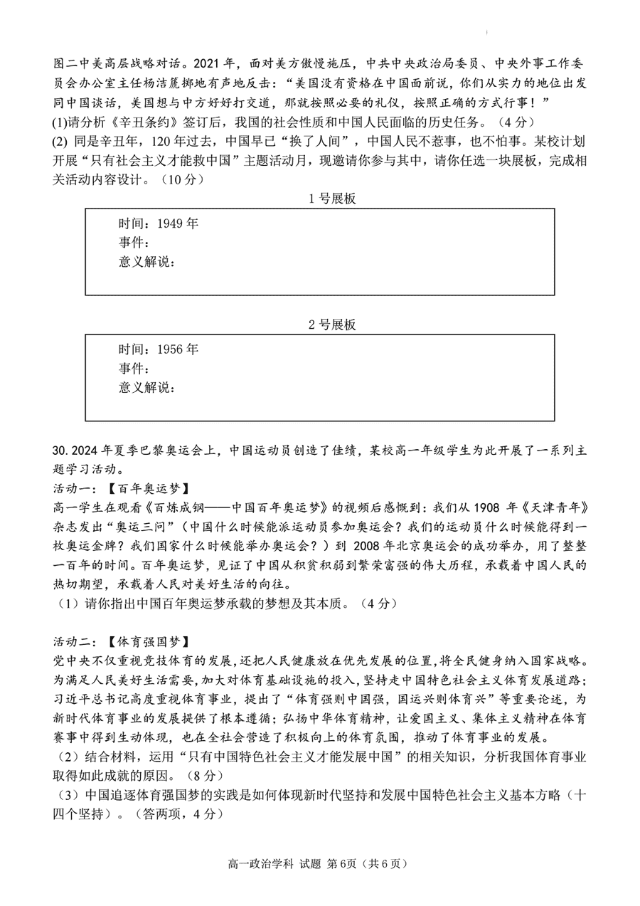 嘉兴八校2024-2025学年高一期中政治试题及答案