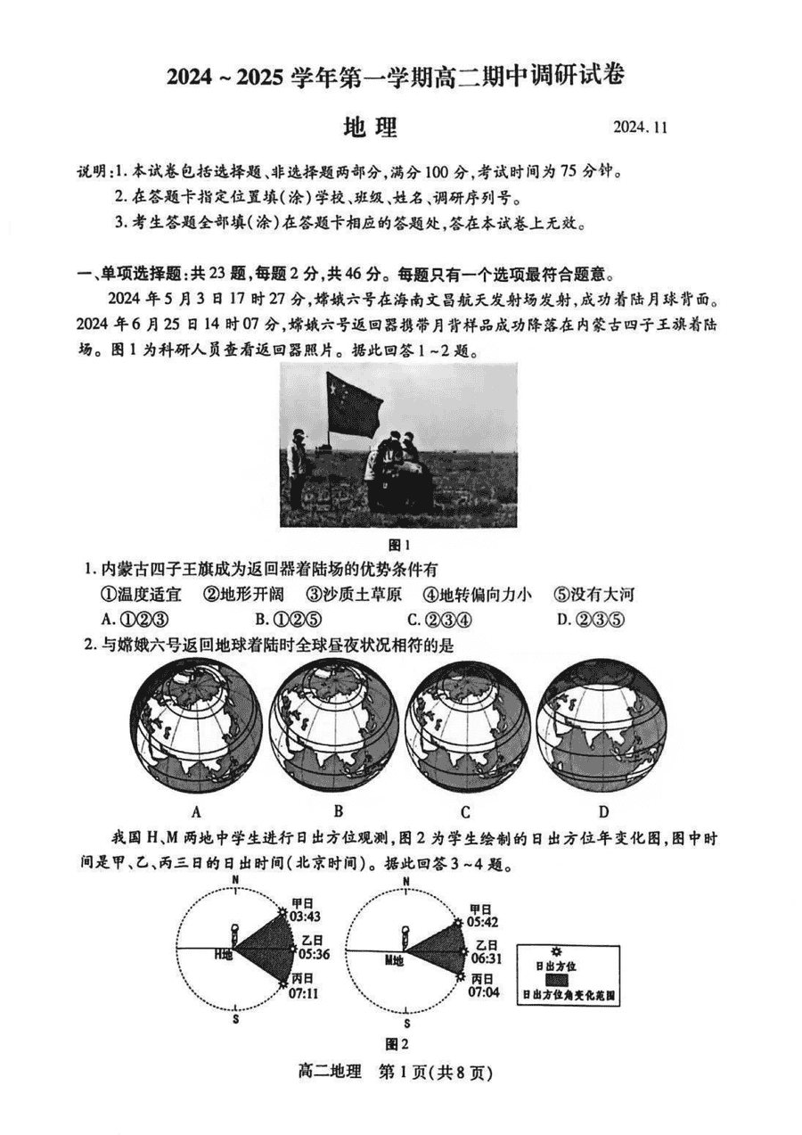 江苏苏州2024-2025学年上学期高二期中地理考试已于近日开考,为方便考生考后及时查看考试情况,查漏补缺、弥补不足,本文整理了试题答案解析相关信息!