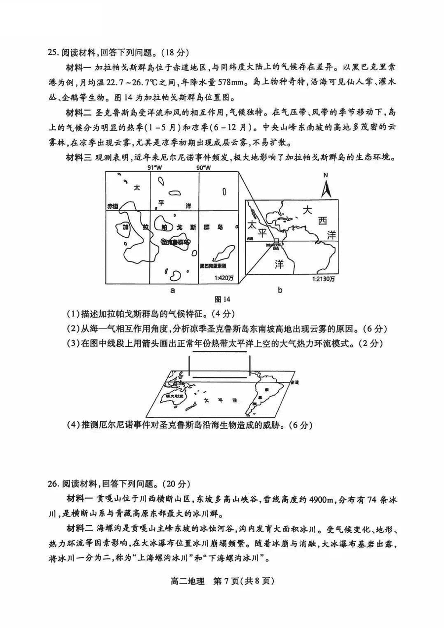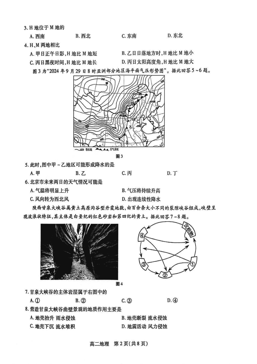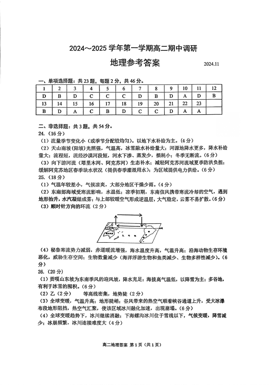 江苏苏州2024-2025学年上学期高二期中地理试题及答案