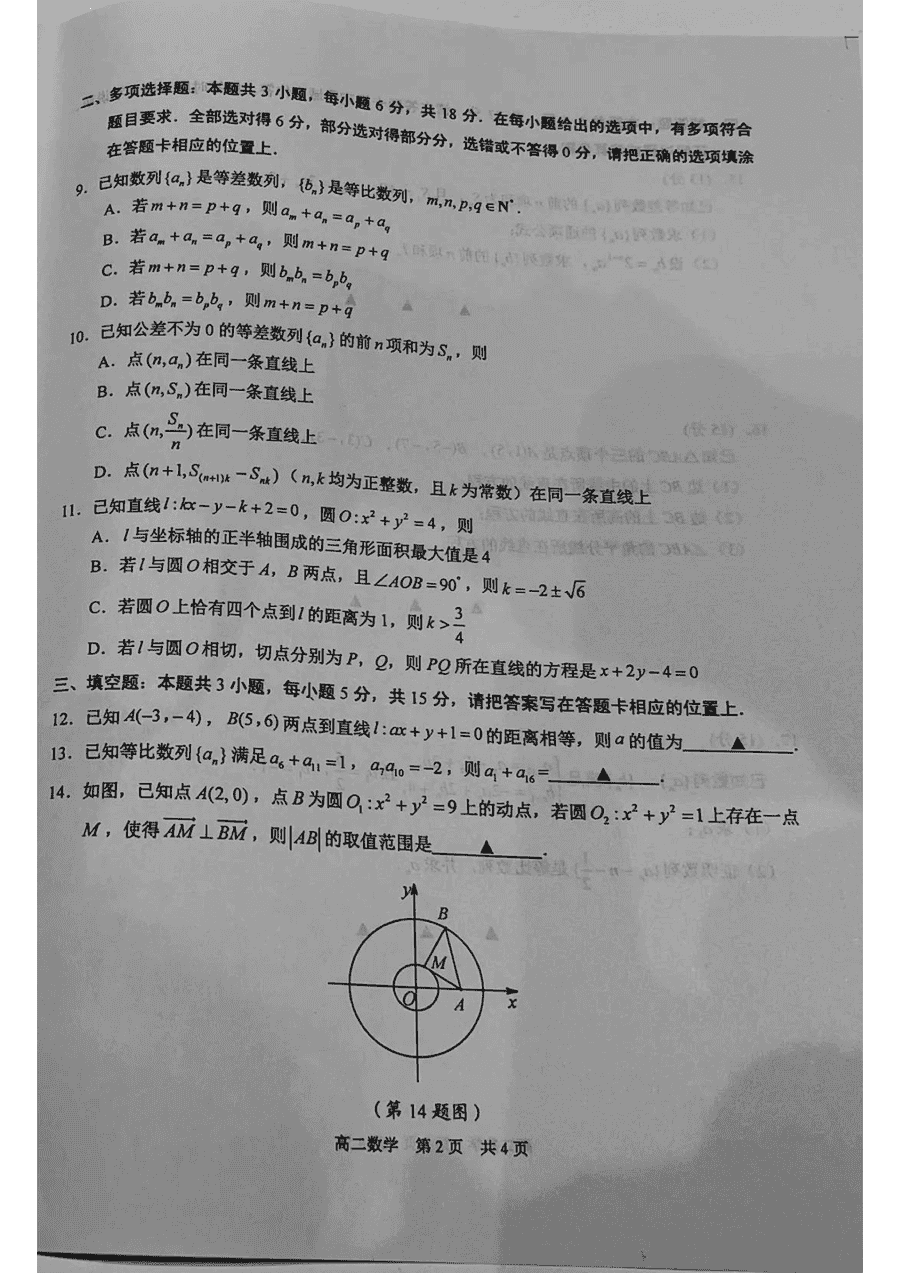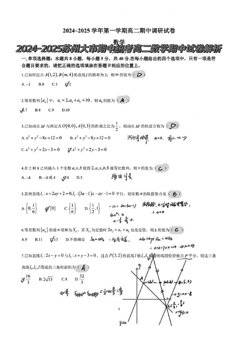 江苏苏州2024-2025学年上学期高二期中数学考试已于近日开考,为方便考生考后及时查看考试情况,查漏补缺、弥补不足,本文整理了试题答案解析相关信息!