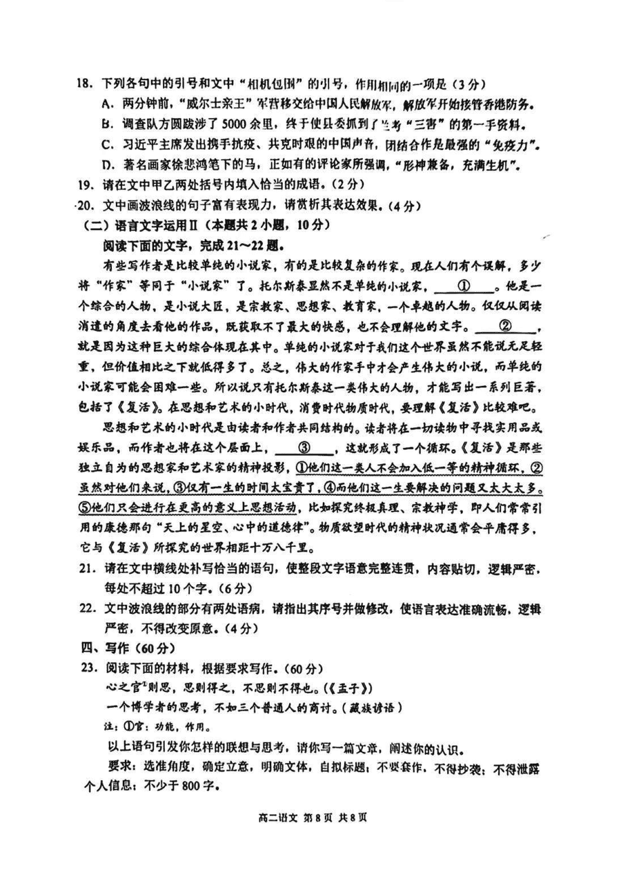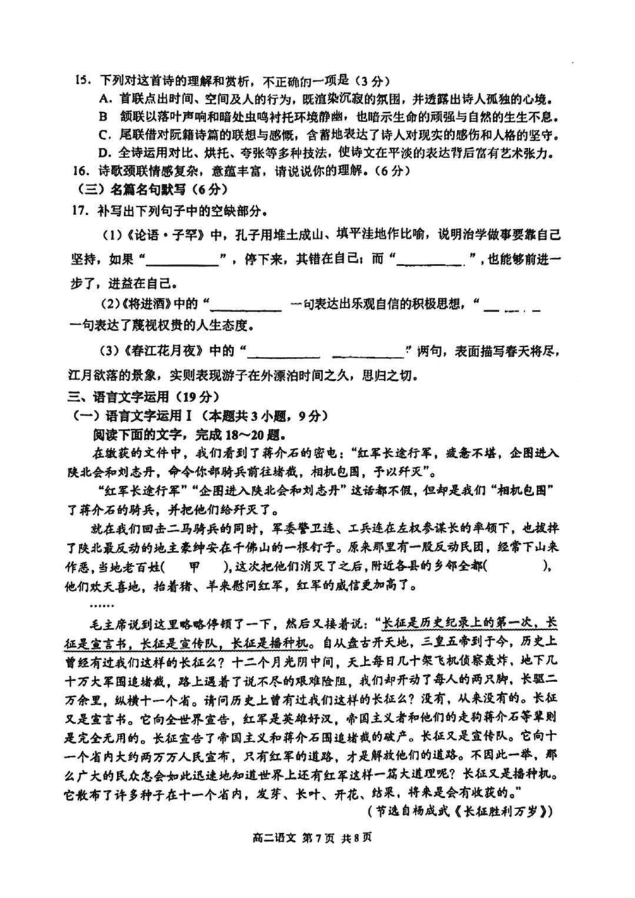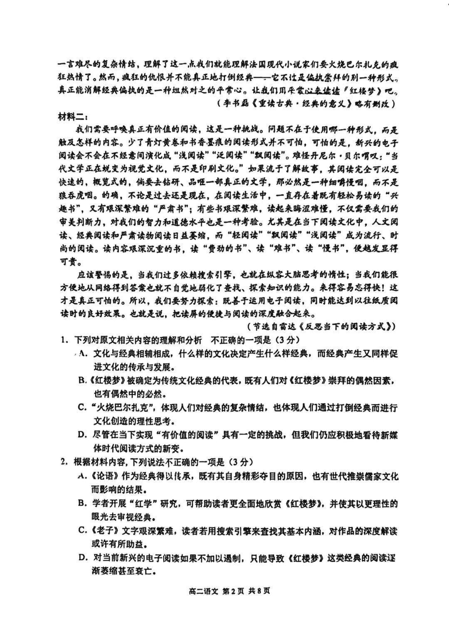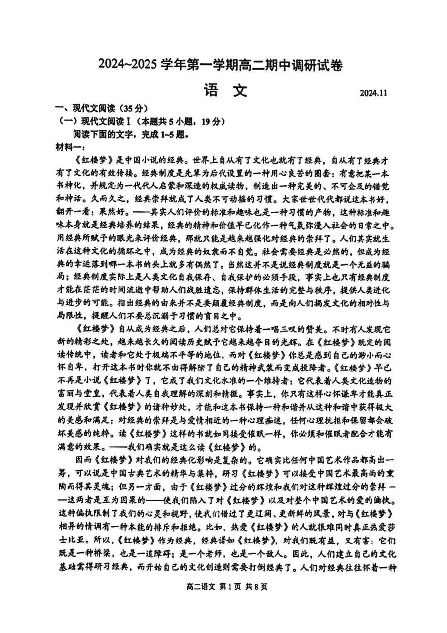 江苏苏州2024-2025学年上学期高二期中语文试题及答案