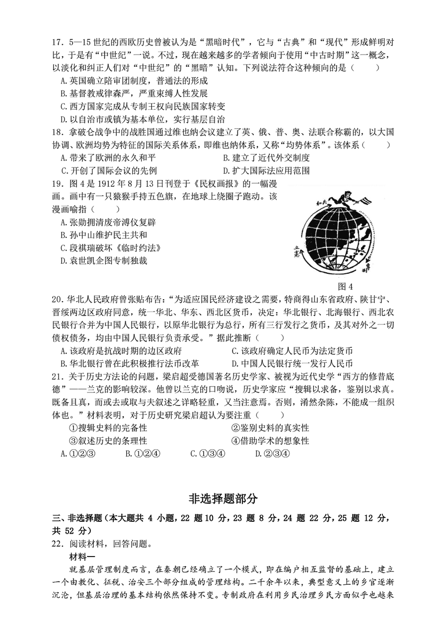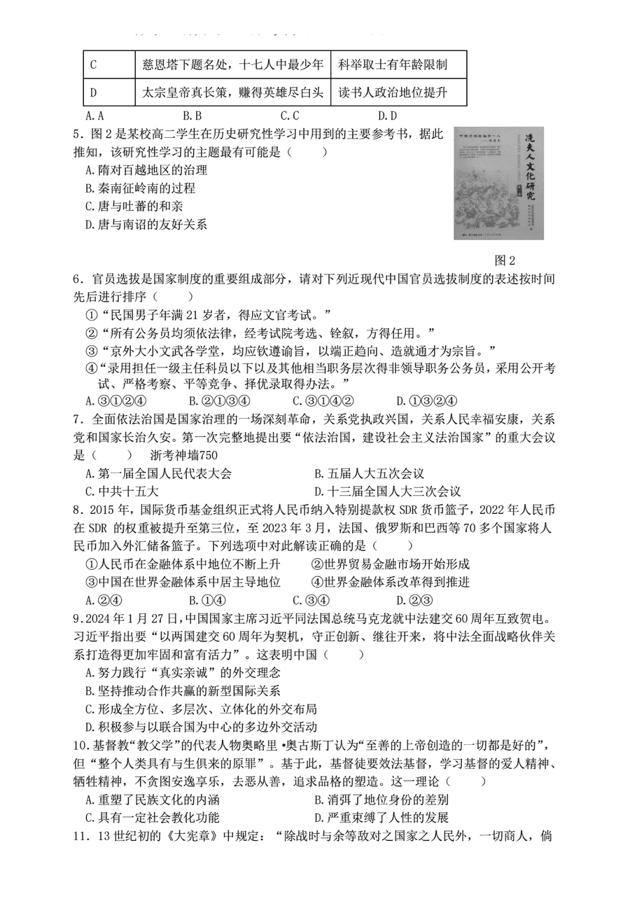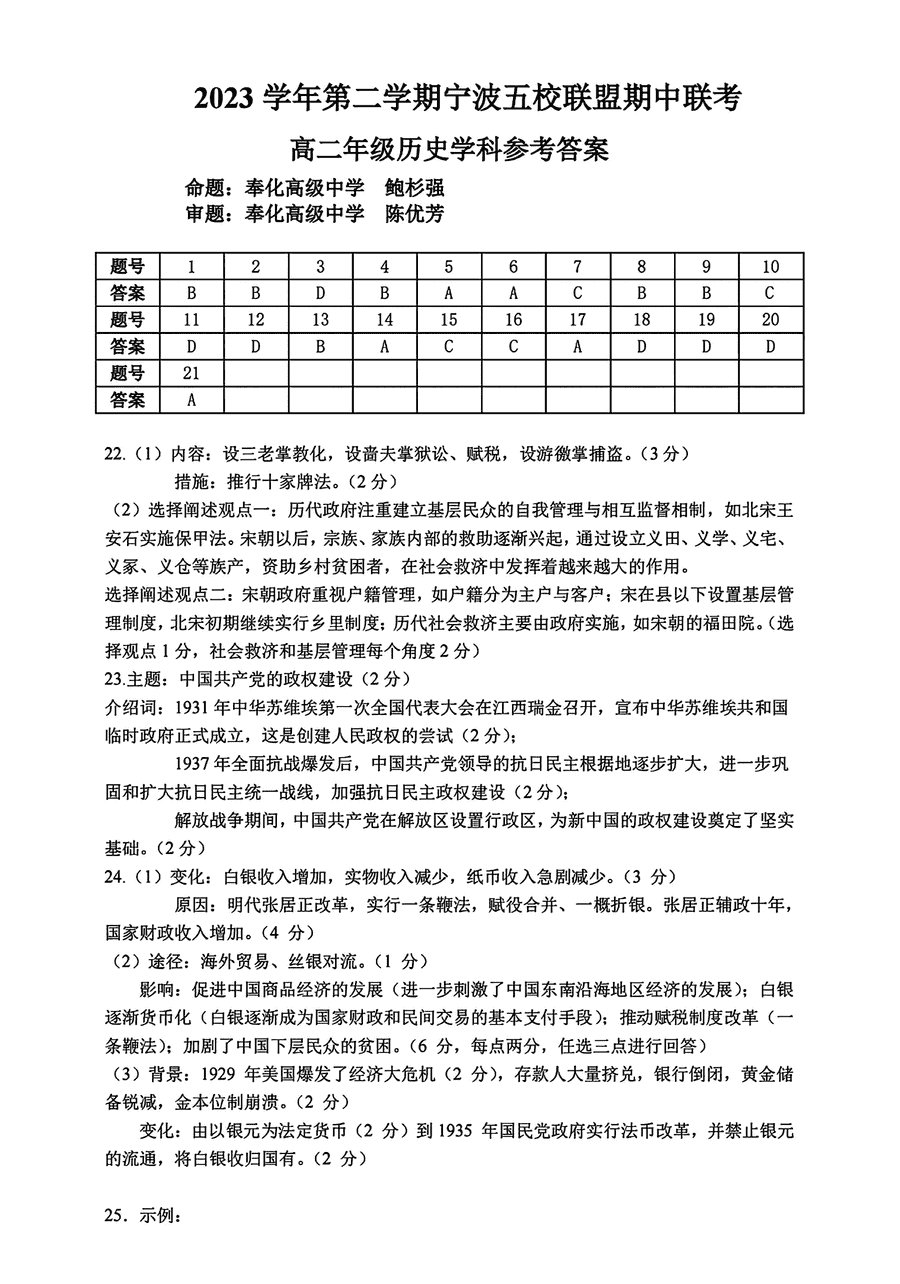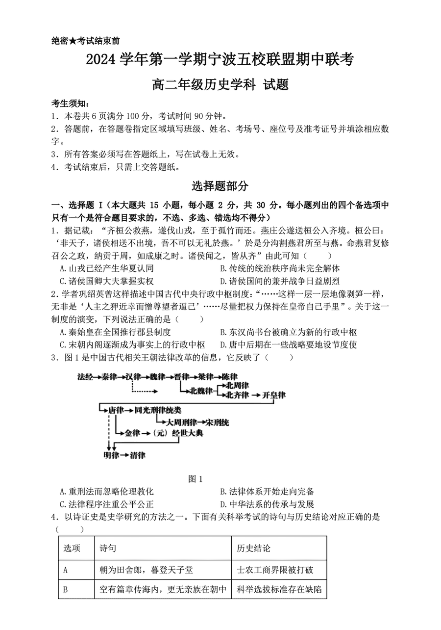 宁波五校联盟2024-2025学年高二期中历史试题及答案