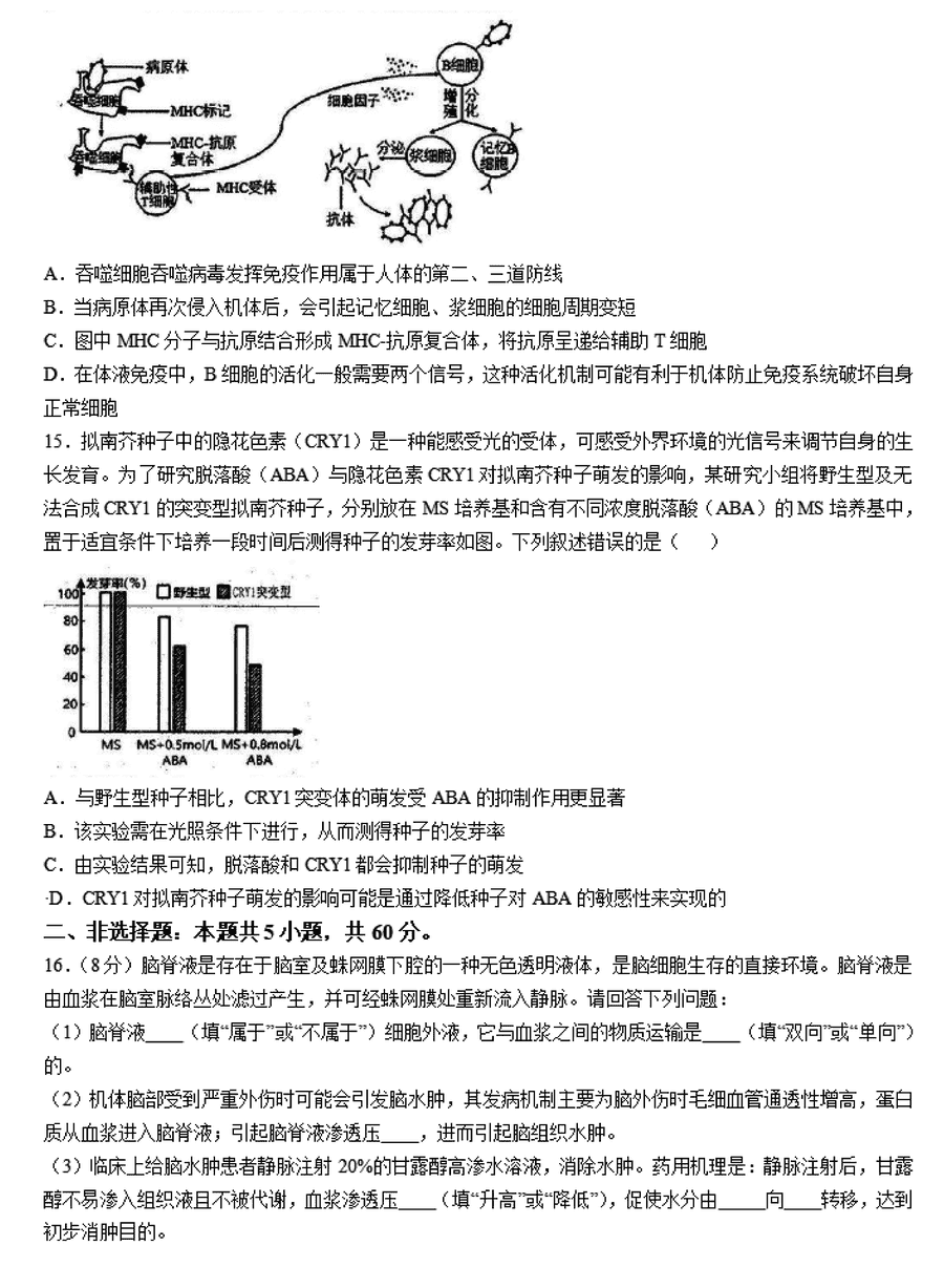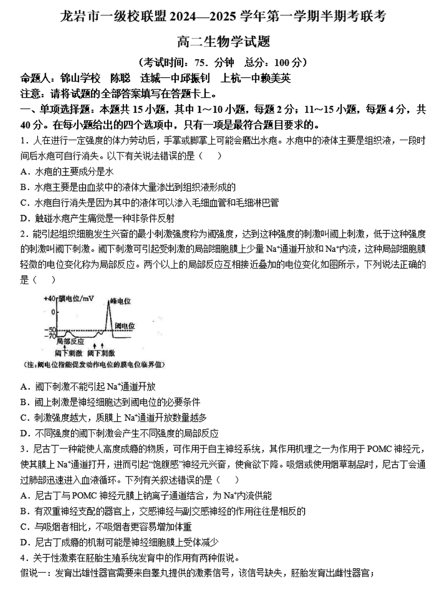 龙岩市一级校联盟2024-2025学年高二上11月期中生物试题及答案