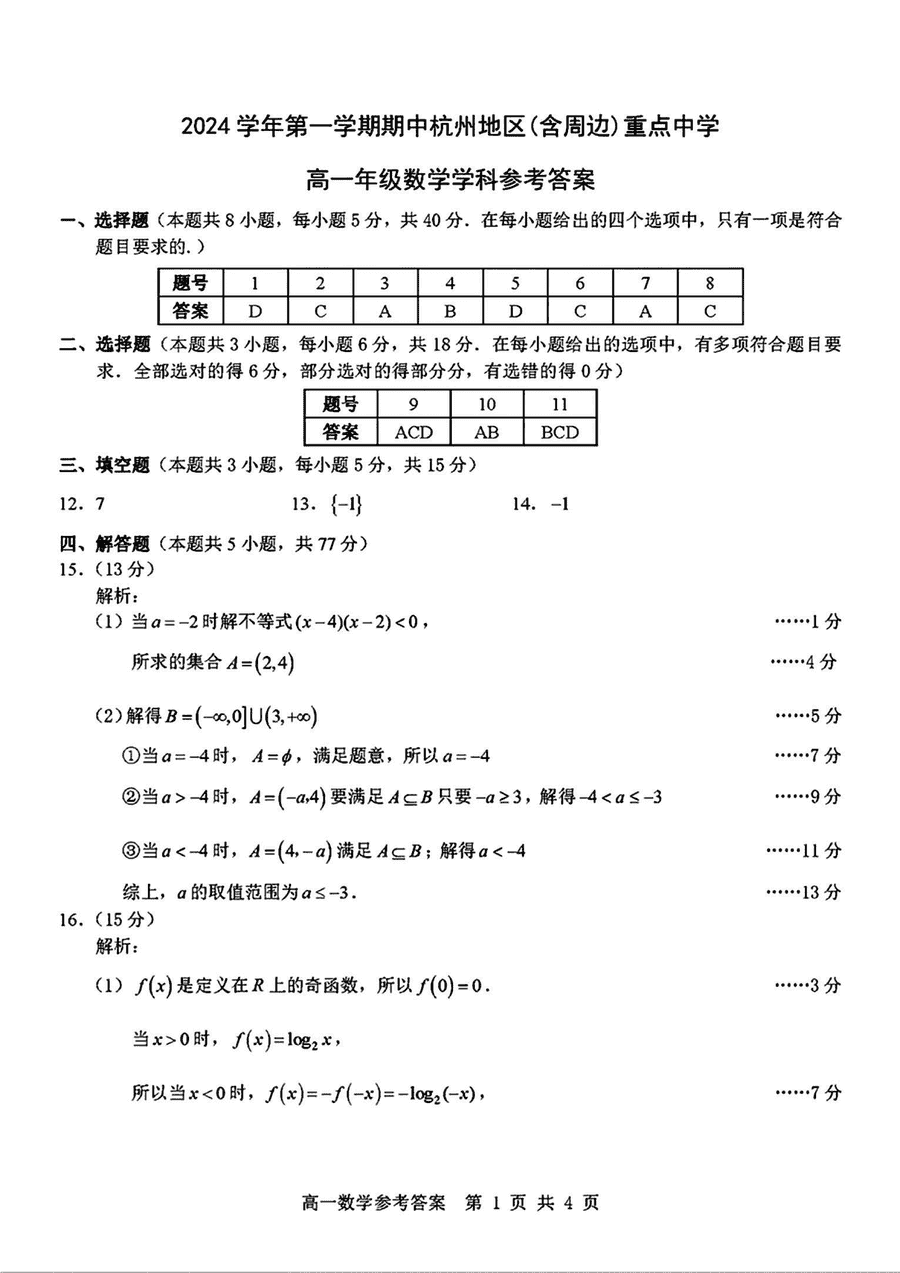杭州地区(含周边)重点中学2024-2025学年高二上学期11月期中数学考试已于近日开考,为方便考生考后及时查看考试情况,查漏补缺、弥补不足,本文整理了试题答案解析相关信息!