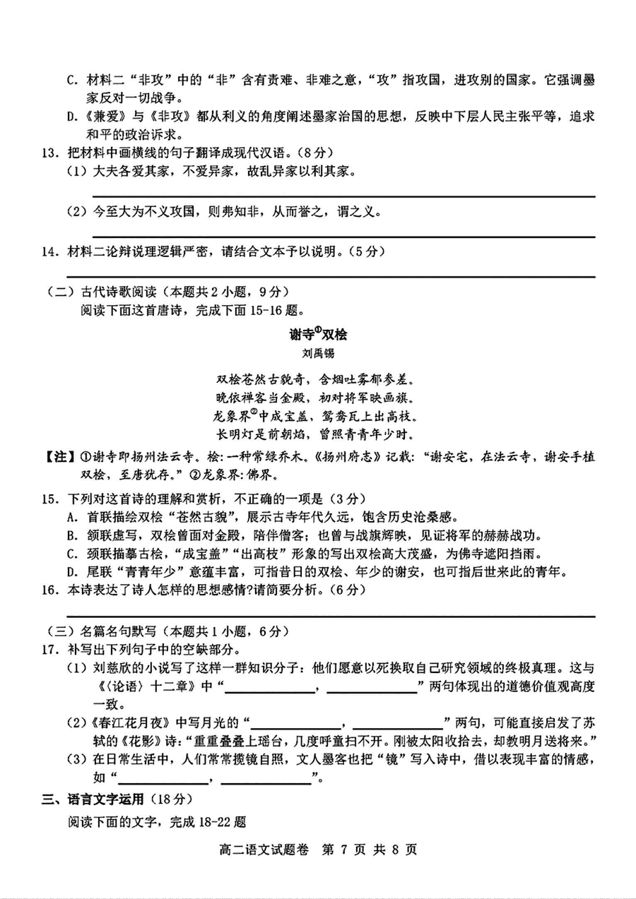 语文试题及答案解析