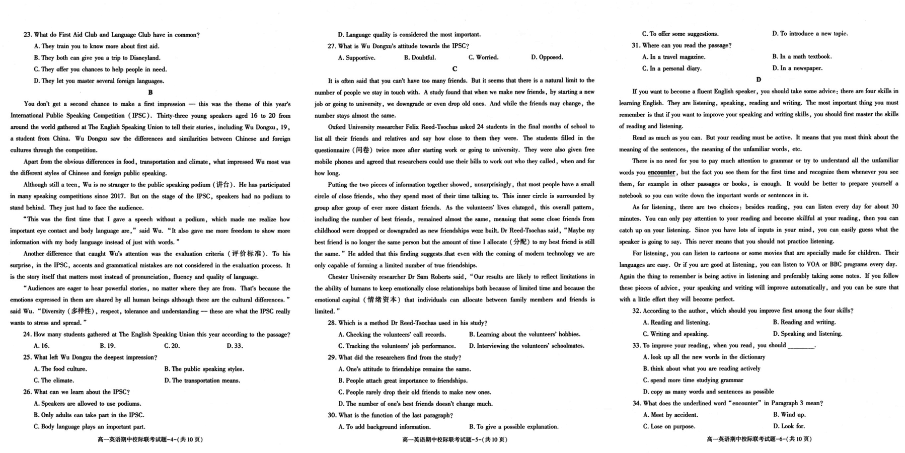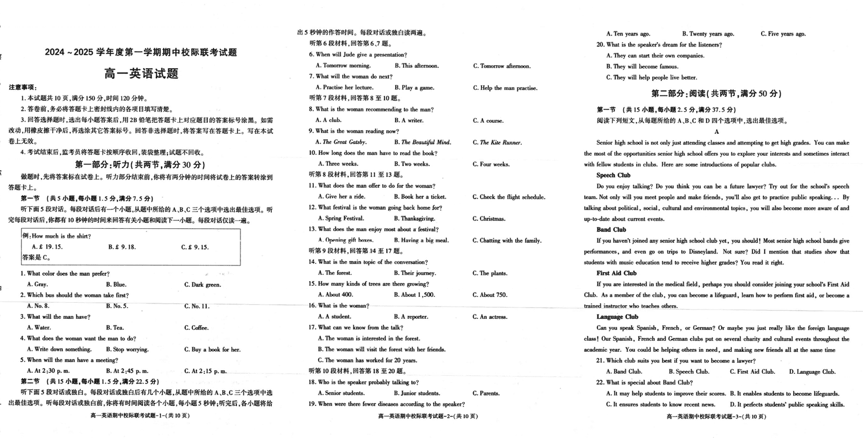 汉中期中联考2024-2025学年高一上学期11月期中英语考试已于近日开考,为方便考生考后及时查看考试情况,查漏补缺、弥补不足,本文整理了试题答案解析相关信息!