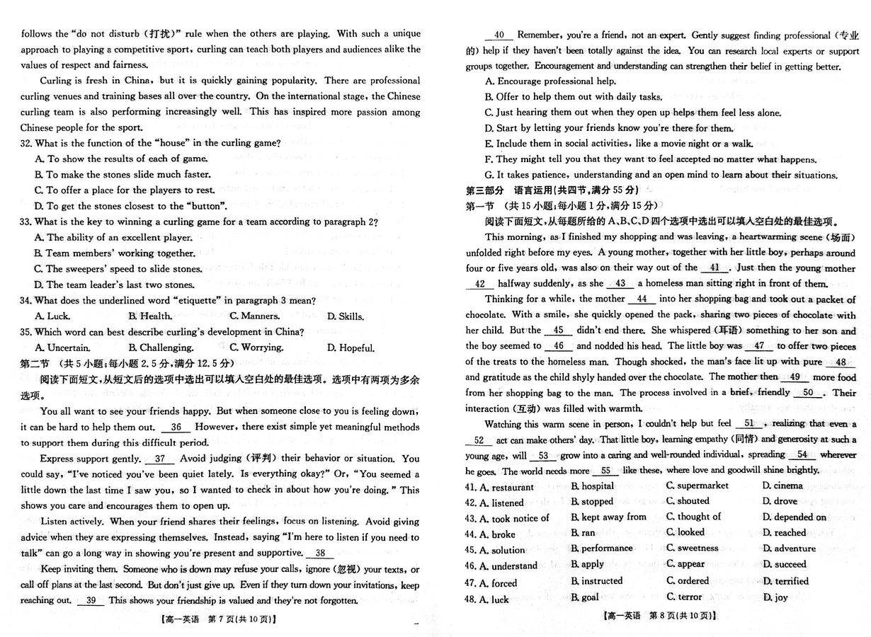 吉黑两省十校联合体2024-2025学年高一上11月期中英语试题及答案