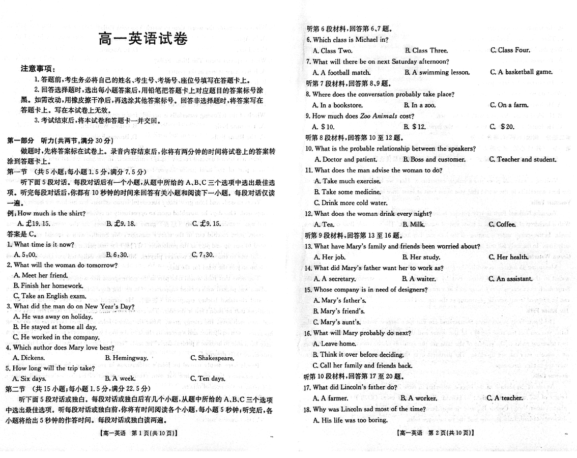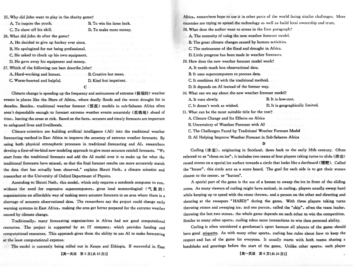 吉林黑龙江两省十校联合体2024-2025学年高一上11月期中英语考试已于近日开考,为方便考生考后及时查看考试情况,查漏补缺、弥补不足,本文整理了试题答案解析相关信息!
