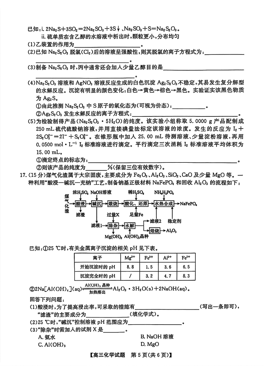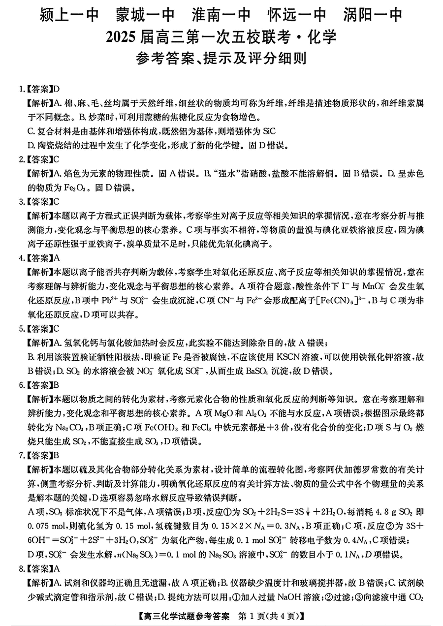 安徽2025届高三第一次五校联考化学考试已于近日开考,为方便考生考后及时查看考试情况,查漏补缺、弥补不足,本文整理了试题答案解析相关信息!