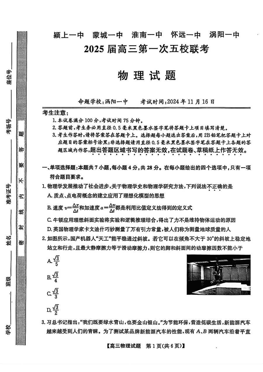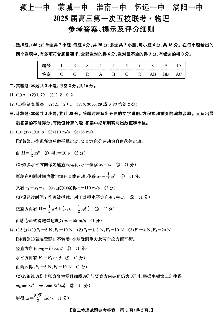 安徽2025届高三第一次五校联考物理试题及答案 时间:2024-11-17 22:58 安徽 理综试题 安徽2025届高三第一次五校联考物理考试已于近日开考,为方便考生考后及时查看考试情况,查漏补缺、弥补不足,本文整理了试题答案解析相关信息! 汇总:安徽2025届高三第一次五校联考试题及答案汇总 物理试题及答案解析