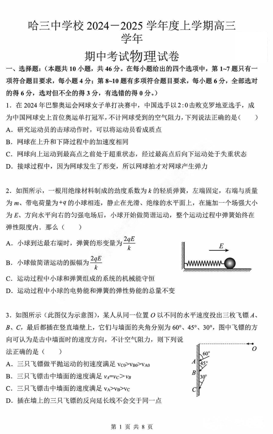 哈三中2025届高三上学期11月期中物理试题及答案 时间:2024-11-17 23:16 黑龙江 理综试题 黑龙江哈三中2025届高三上学期11月期中物理考试已于近日开考,为方便考生考后及时查看考试情况,查漏补缺、弥补不足,本文整理了试题答案解析相关信息! 汇总:黑龙江哈三中2025届高三上学期期中试题及答案汇总 物理试题及答案解析