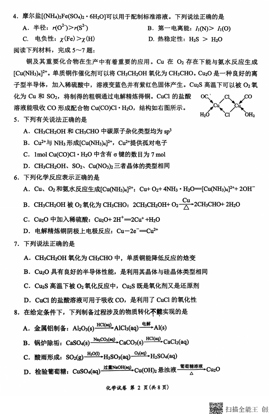 化学试题及答案解析
