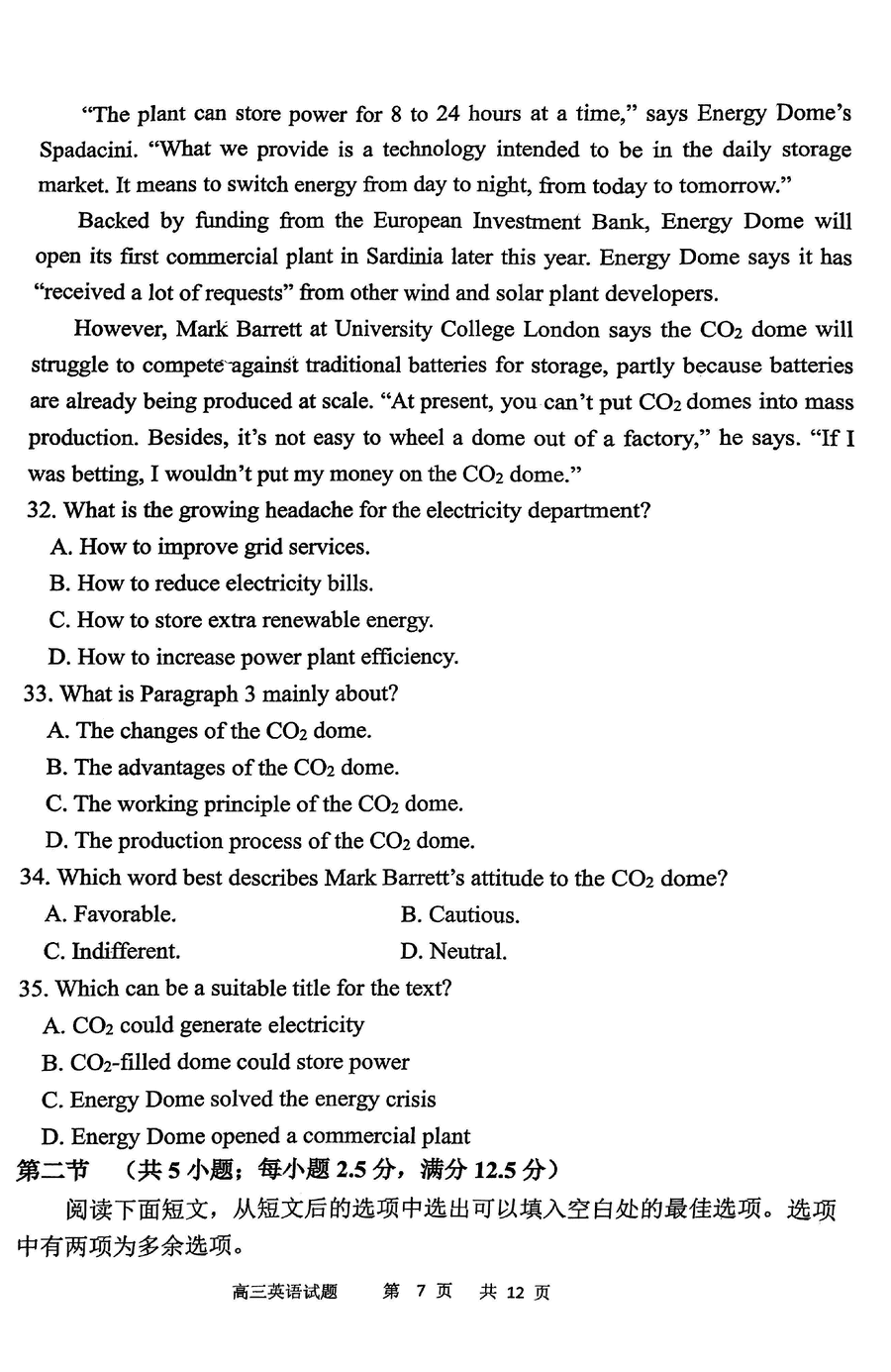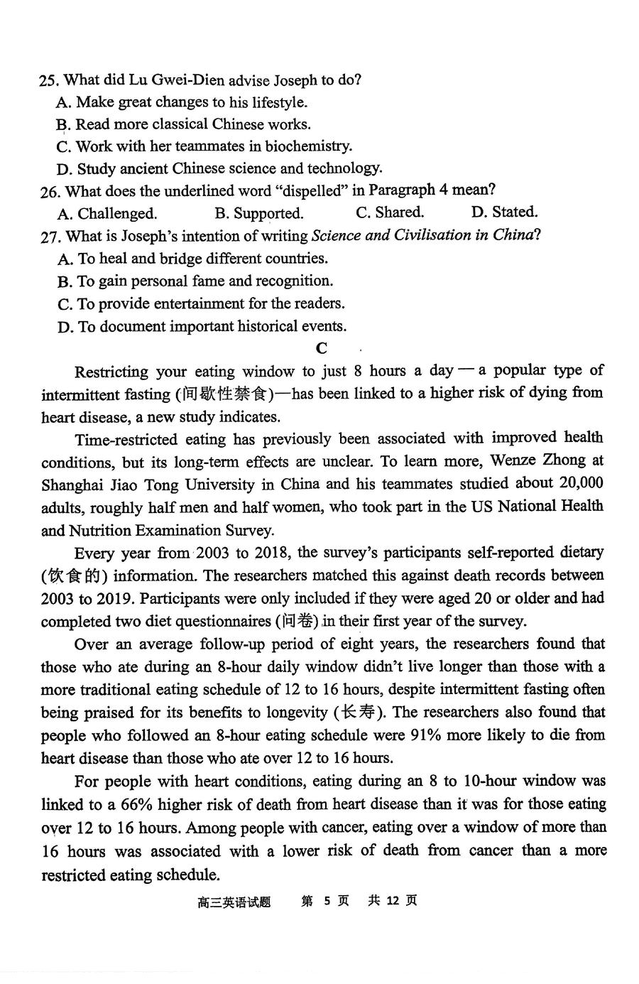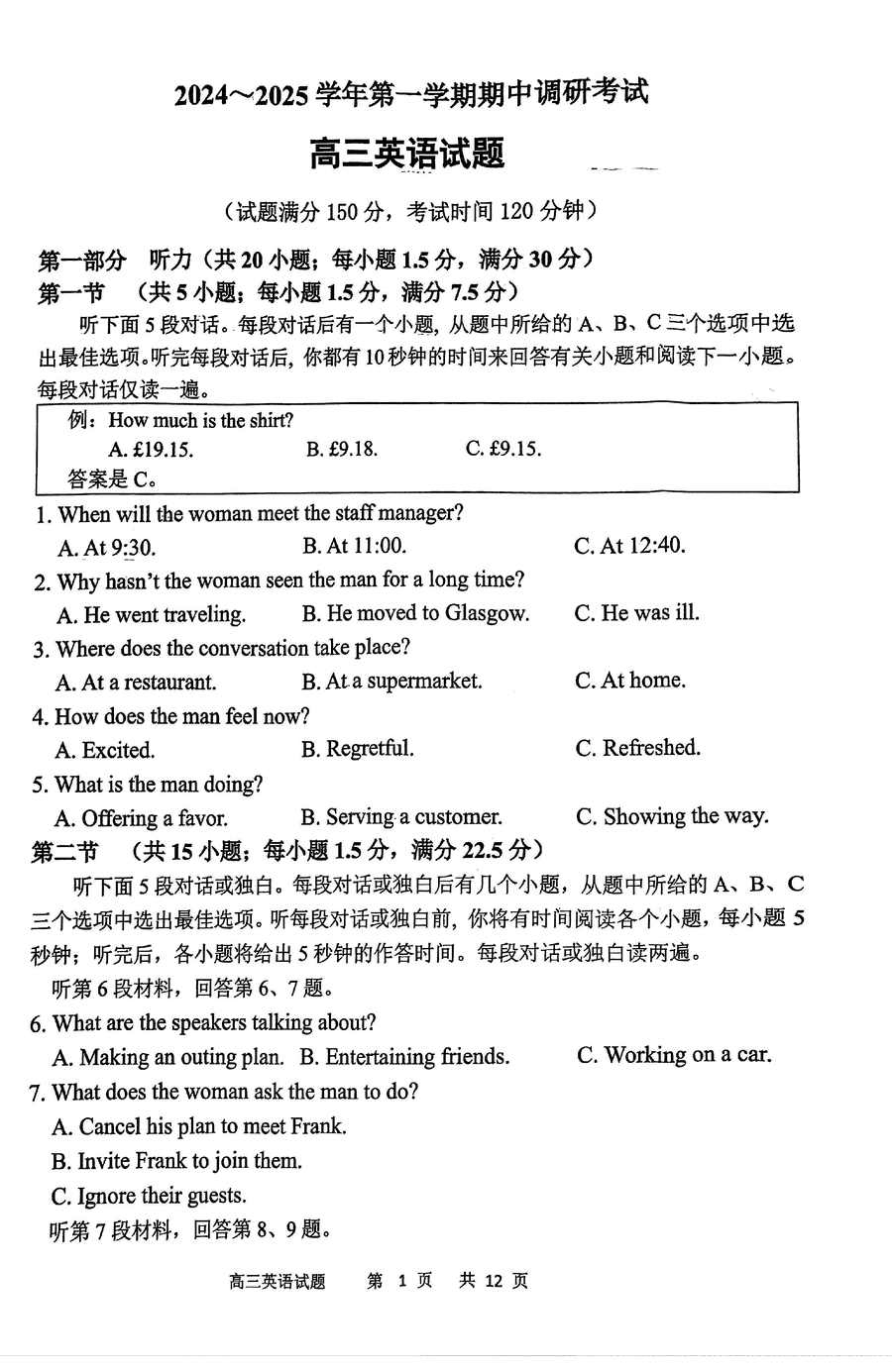 连云港市2024-2025学年高三上学期期中英语试题及答案