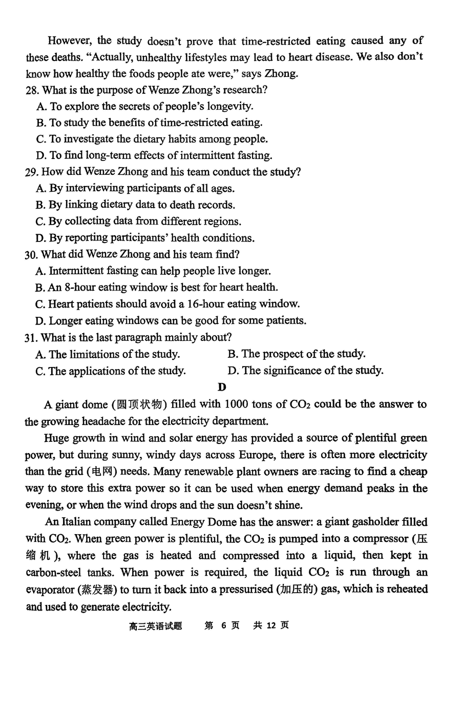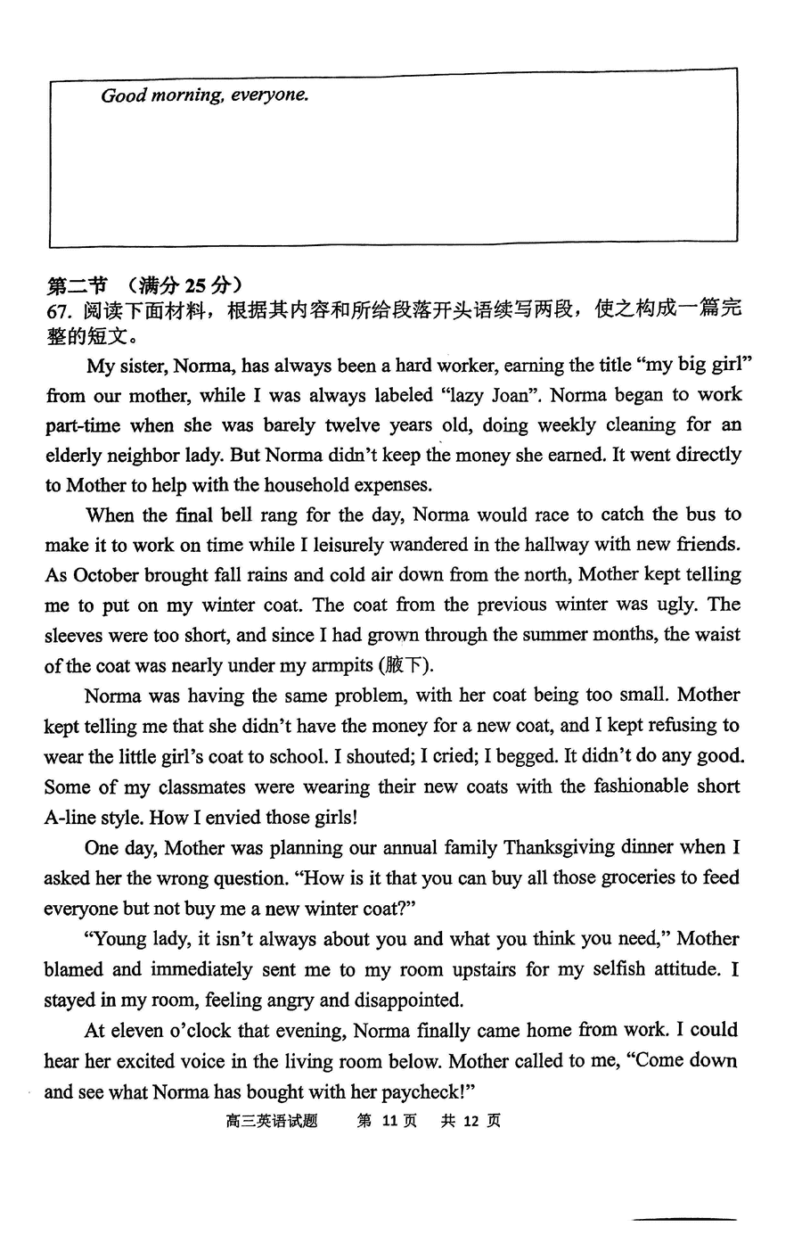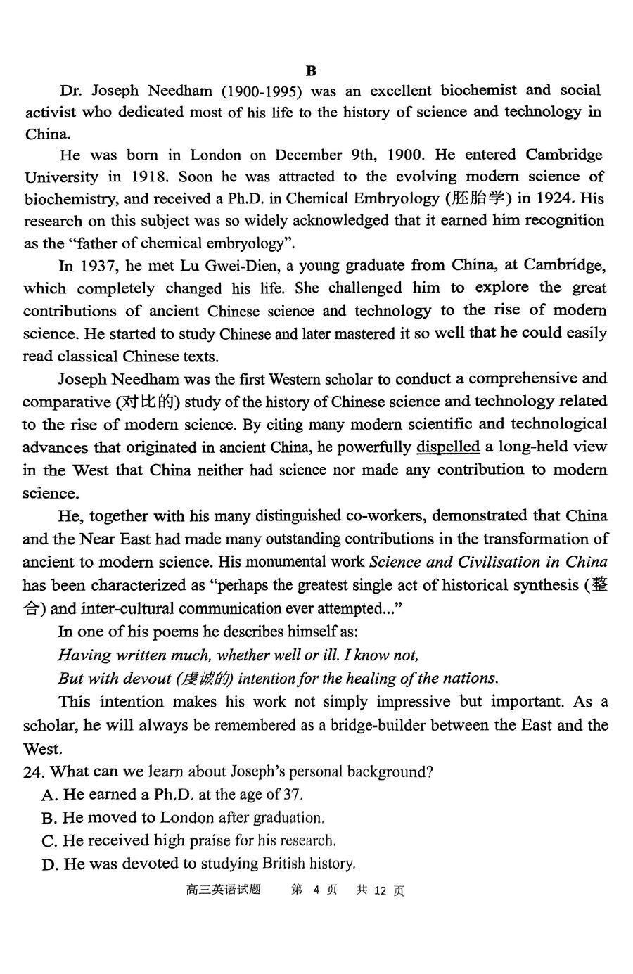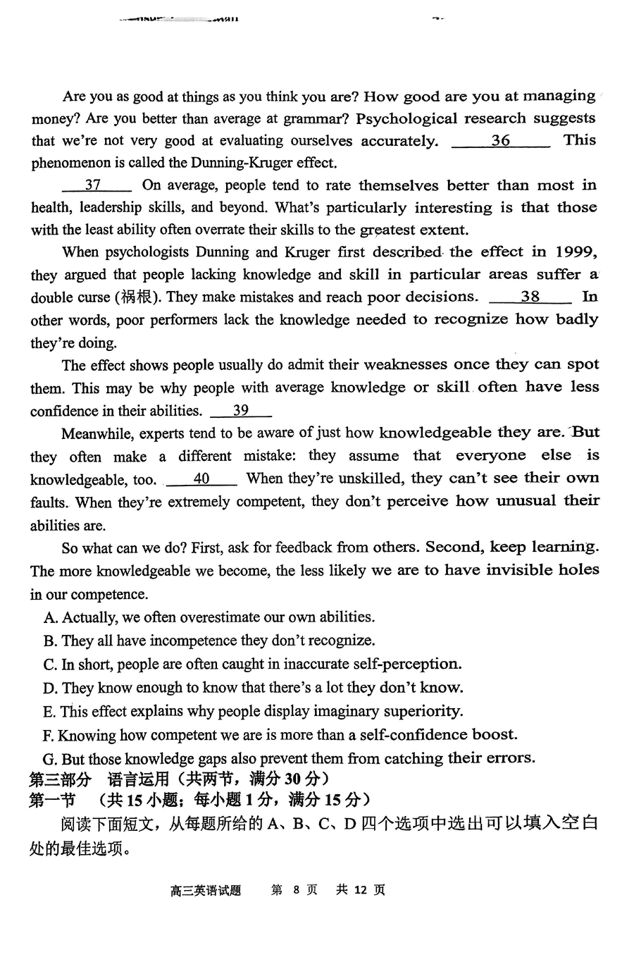 连云港市2024-2025学年高三上学期期中英语试题及答案