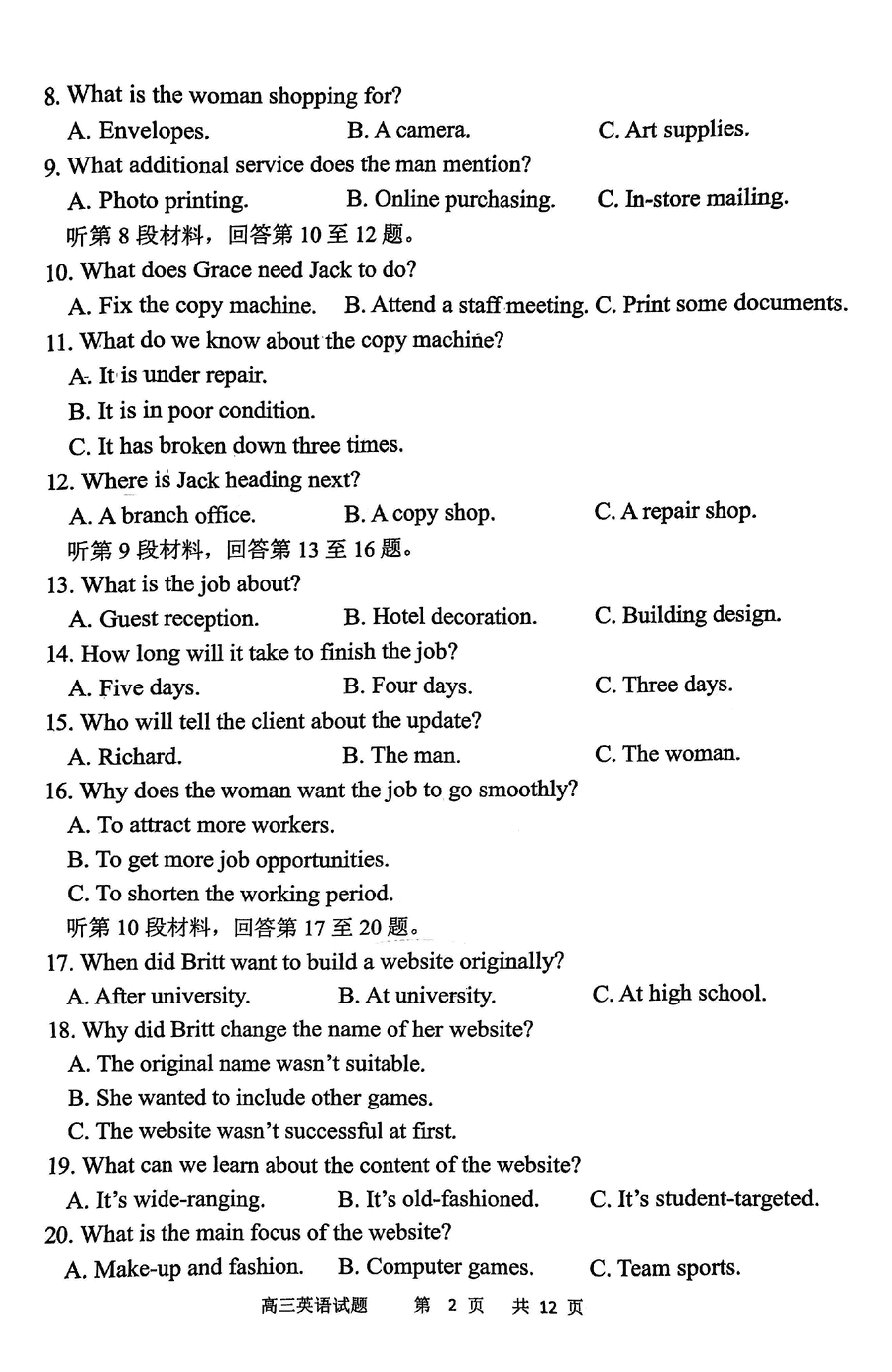 江苏连云港市2024-2025学年高三上学期期中英语考试已于近日开考,为方便考生考后及时查看考试情况,查漏补缺、弥补不足,本文整理了试题答案解析相关信息!