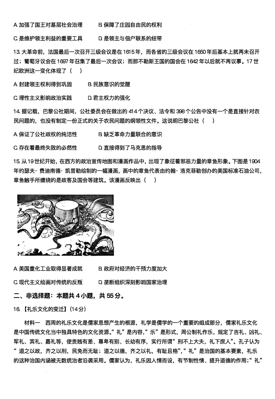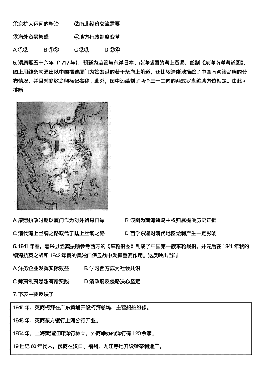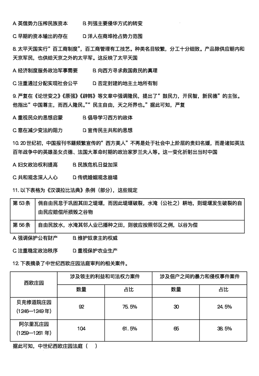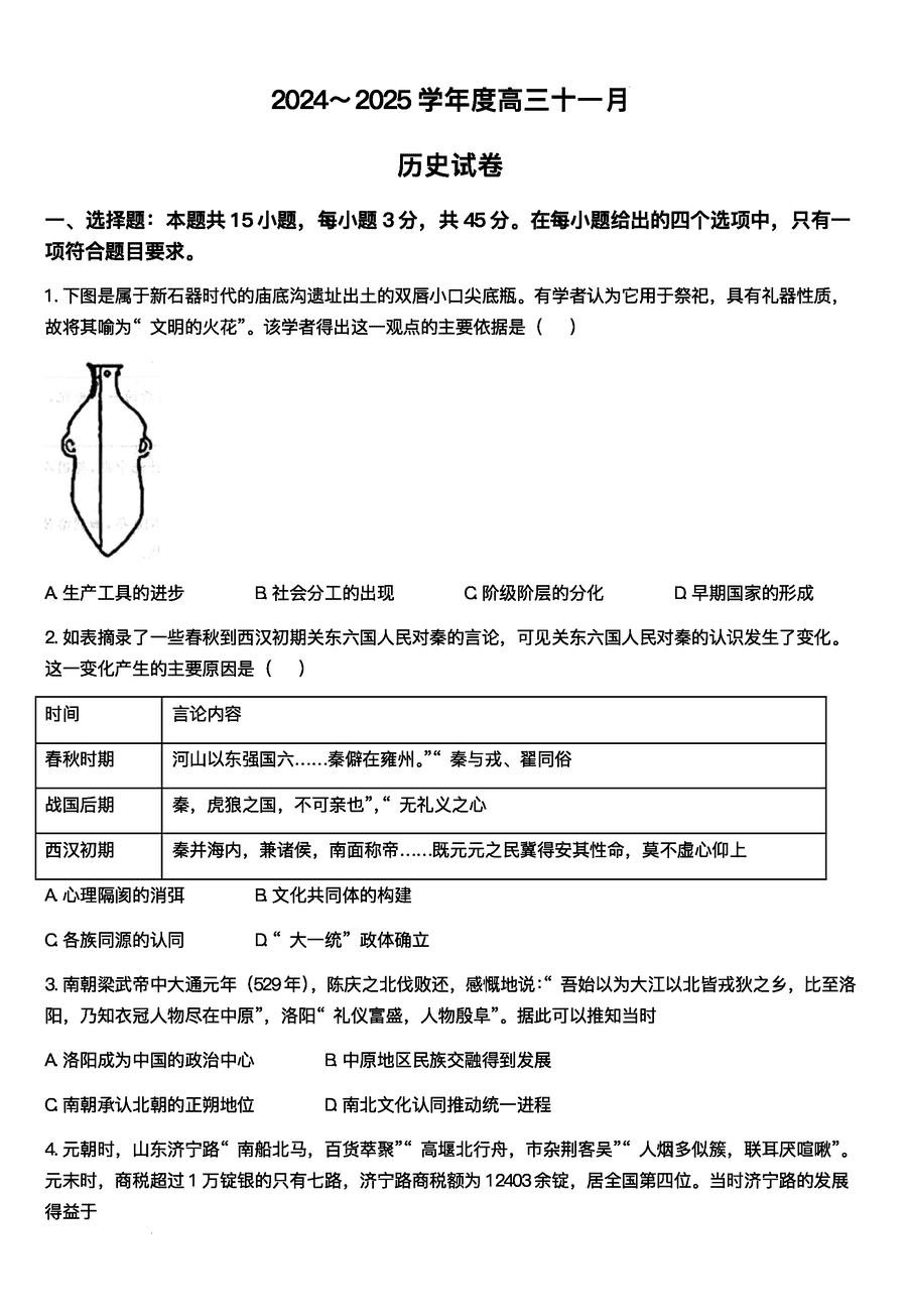 武汉江岸区2025届高三上学期11月调研历史试题及答案