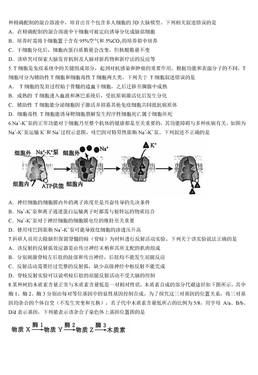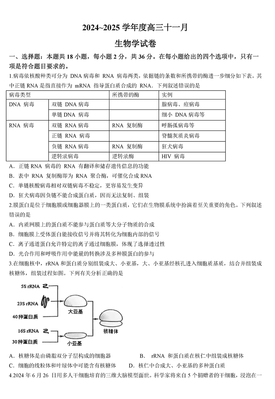 武汉江岸区2025届高三上学期11月调研生物试题及答案