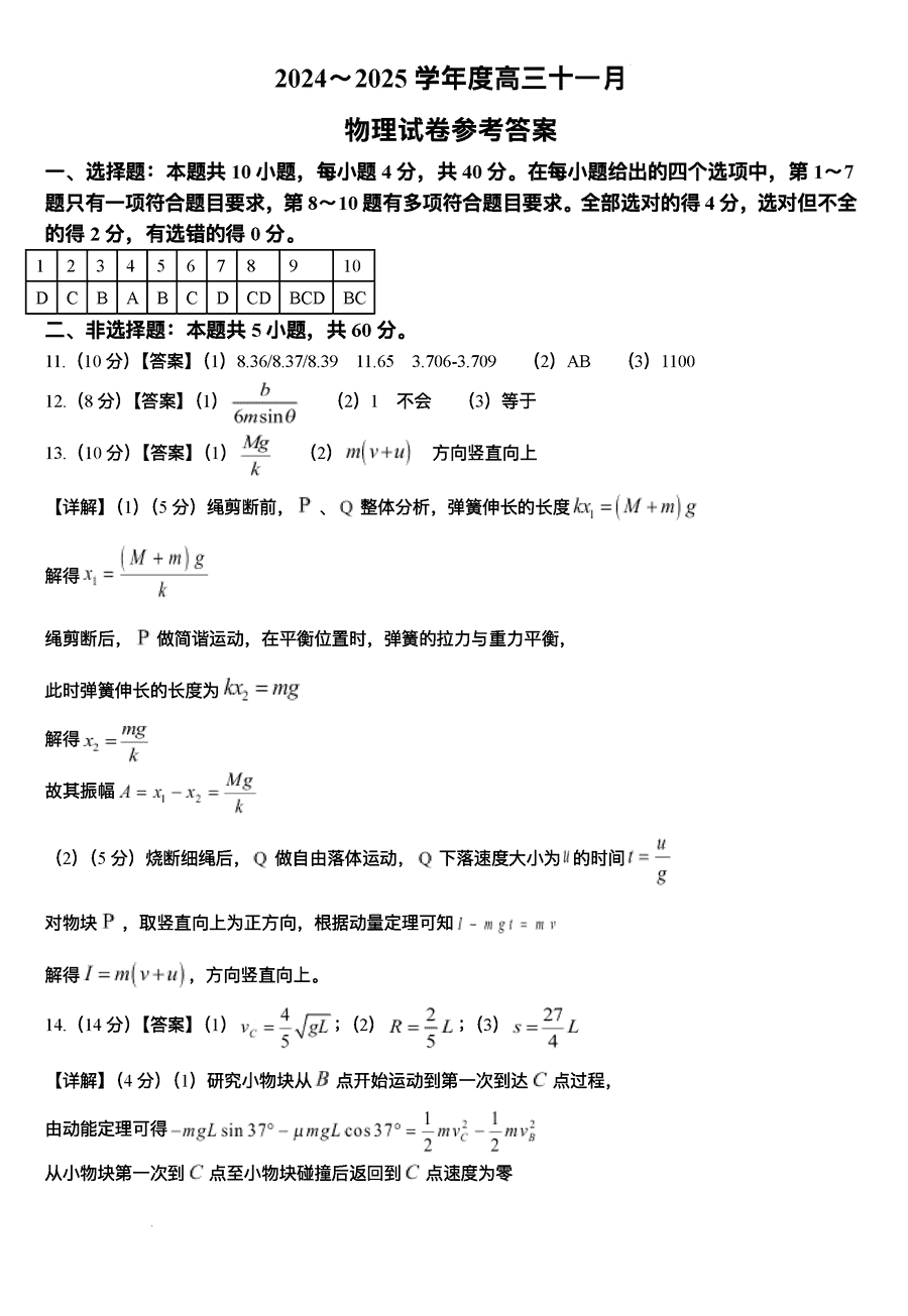 武汉江岸区2025届高三上学期11月调研物理考试已于近日开考,为方便考生考后及时查看考试情况,查漏补缺、弥补不足,本文整理了试题答案解析相关信息!