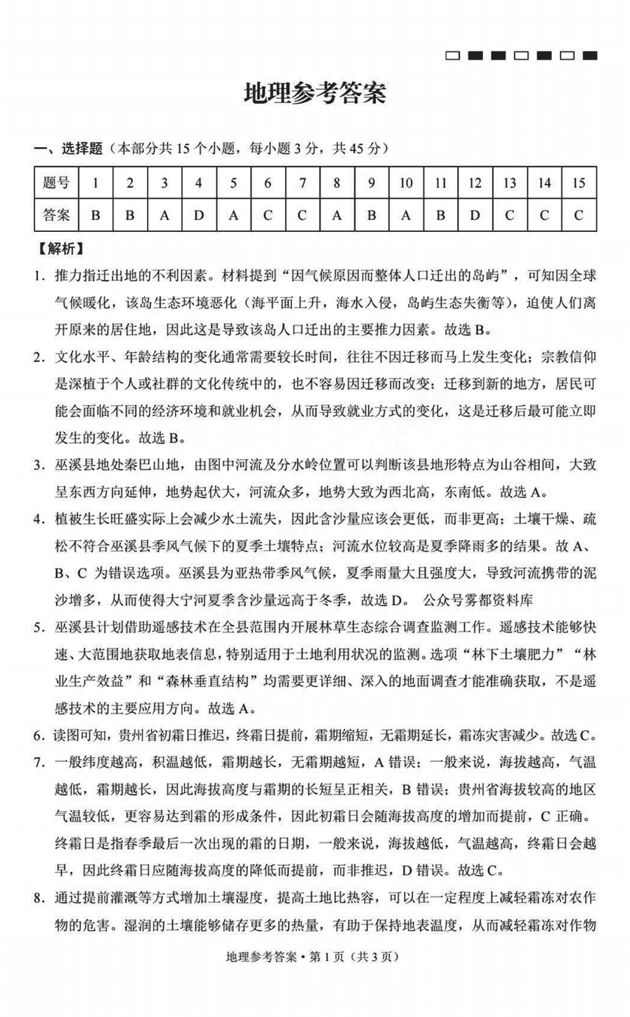 重庆巴蜀中学2025届高考适应性月考卷(三)地理考试已于近日开考,为方便考生考后及时查看考试情况,查漏补缺、弥补不足,本文整理了试题答案解析相关信息!