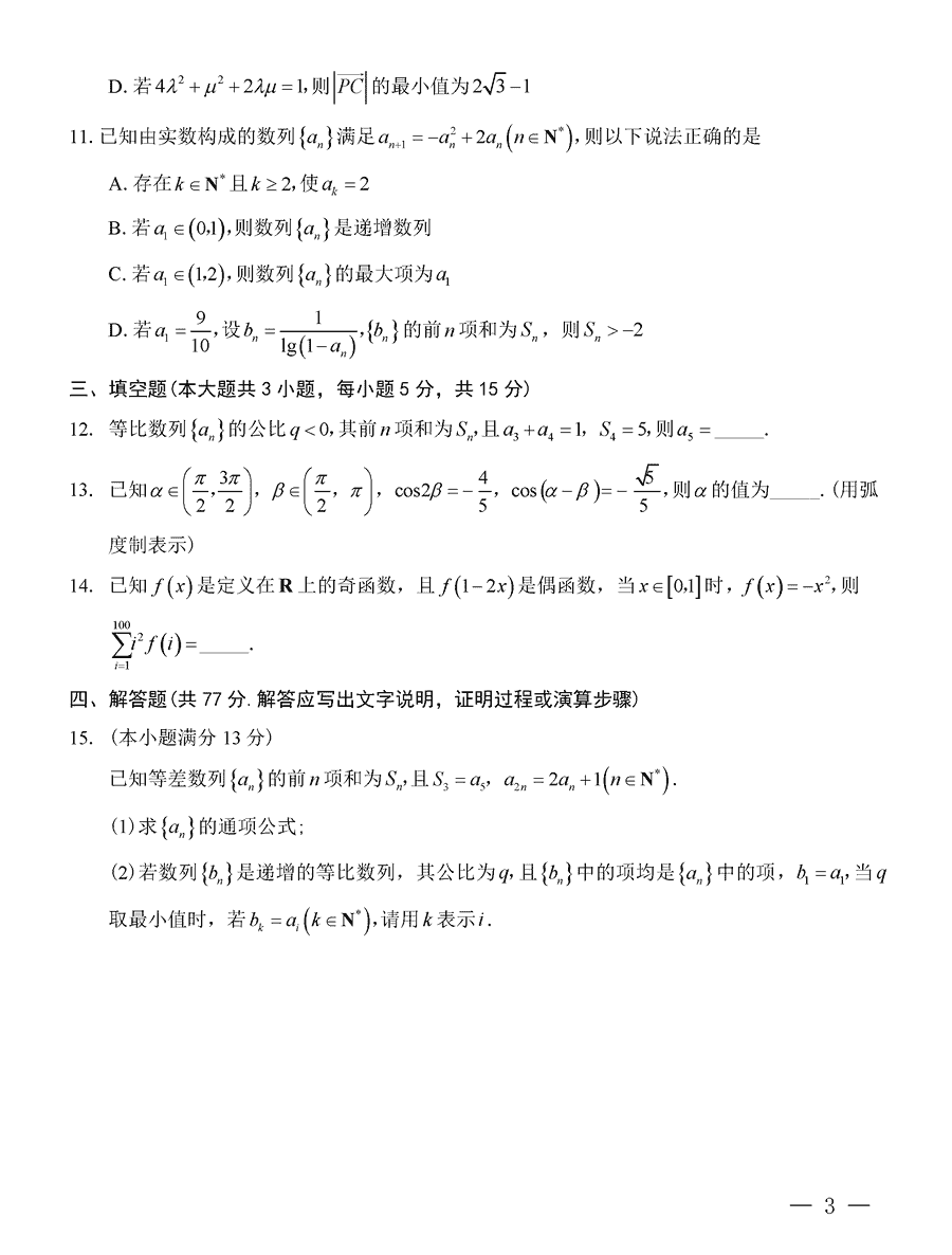 重庆巴蜀中学2025届高考适应性月考卷(三)数学试题及答案