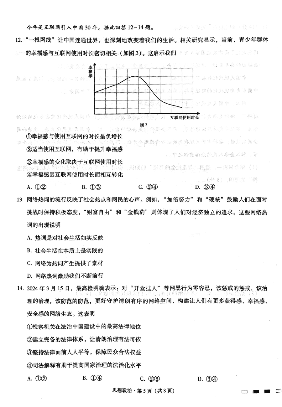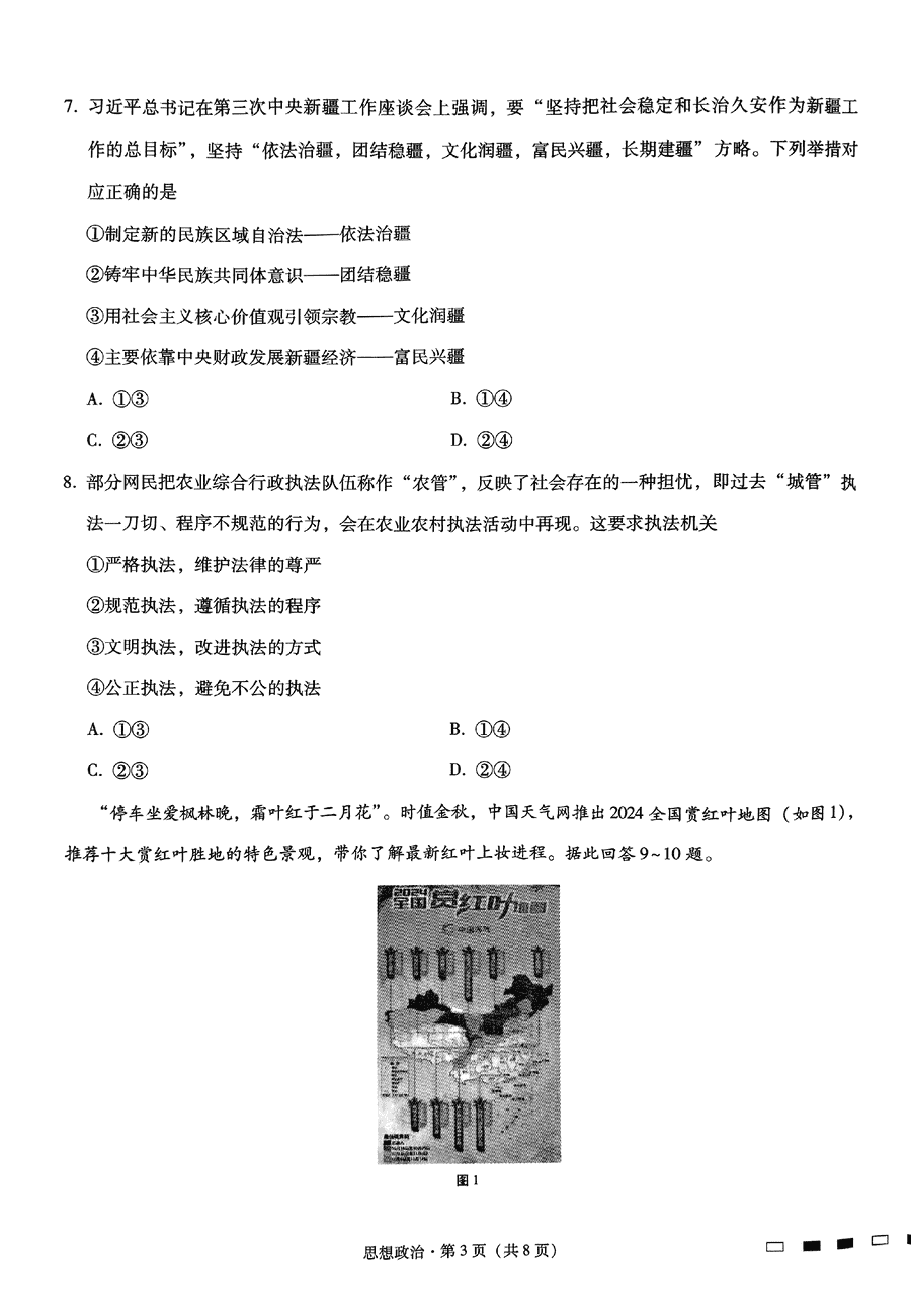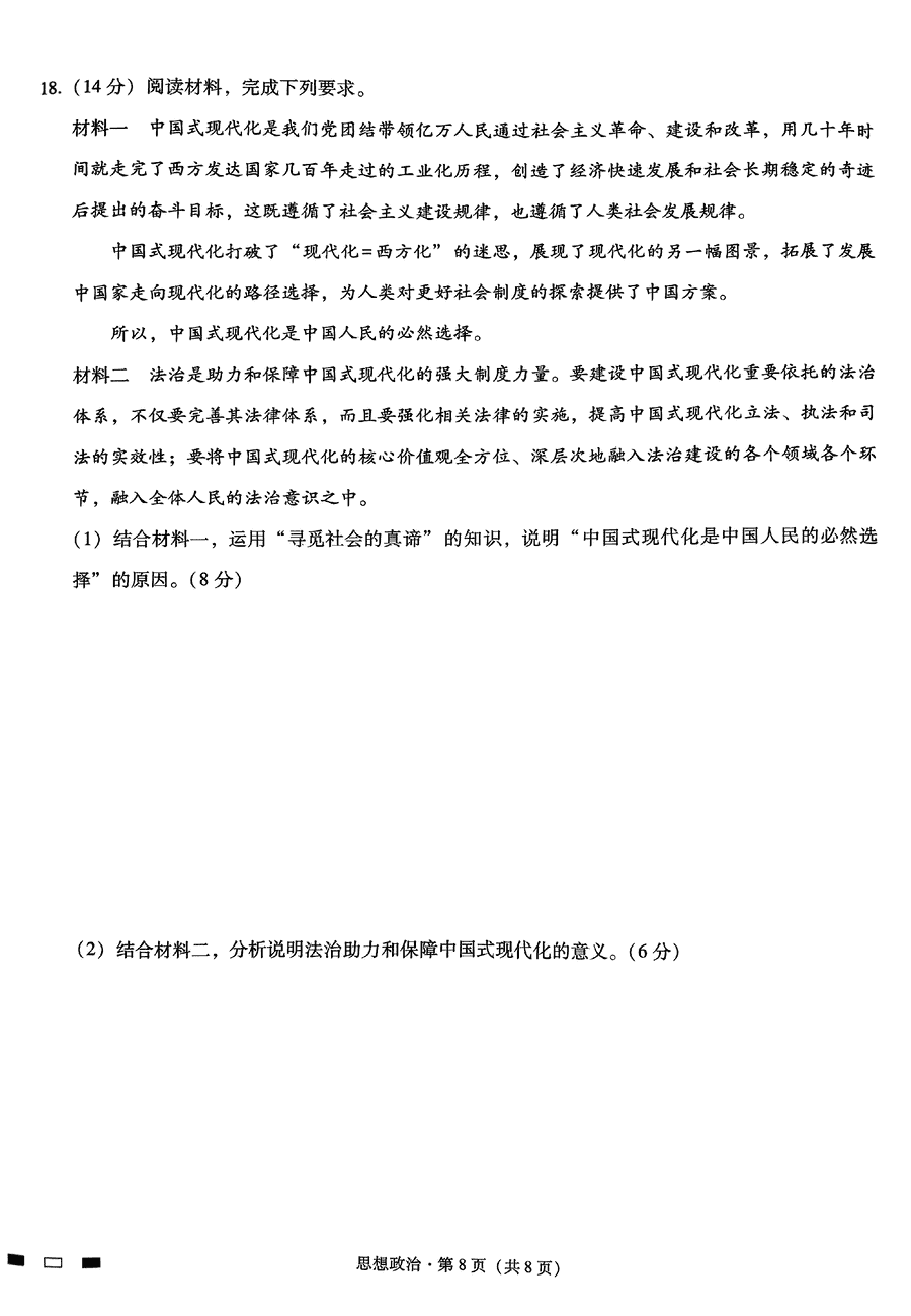 重庆巴蜀中学2025届高考适应性月考卷(三)政治试题及答案
