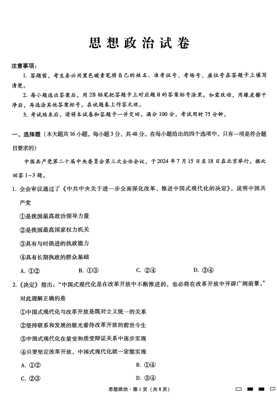 重庆巴蜀中学2025届高考适应性月考卷(三)政治考试已于近日开考,为方便考生考后及时查看考试情况,查漏补缺、弥补不足,本文整理了试题答案解析相关信息!