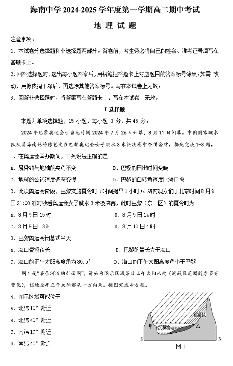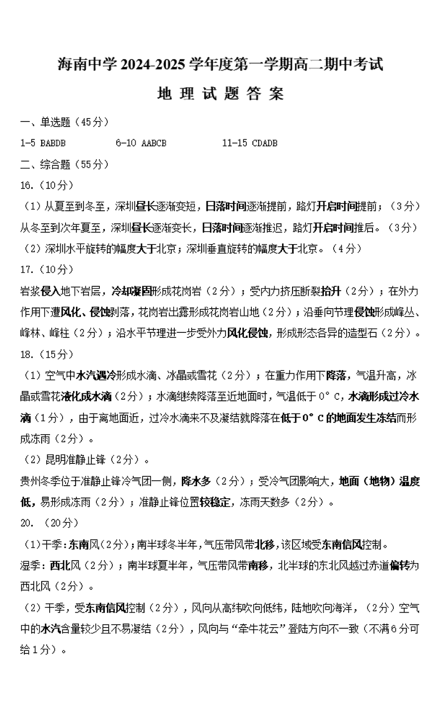 海南中学2024-2025学年高二上学期11月期中地理考试已于近日开考,为方便考生考后及时查看考试情况,查漏补缺、弥补不足,本文整理了试题答案解析相关信息!