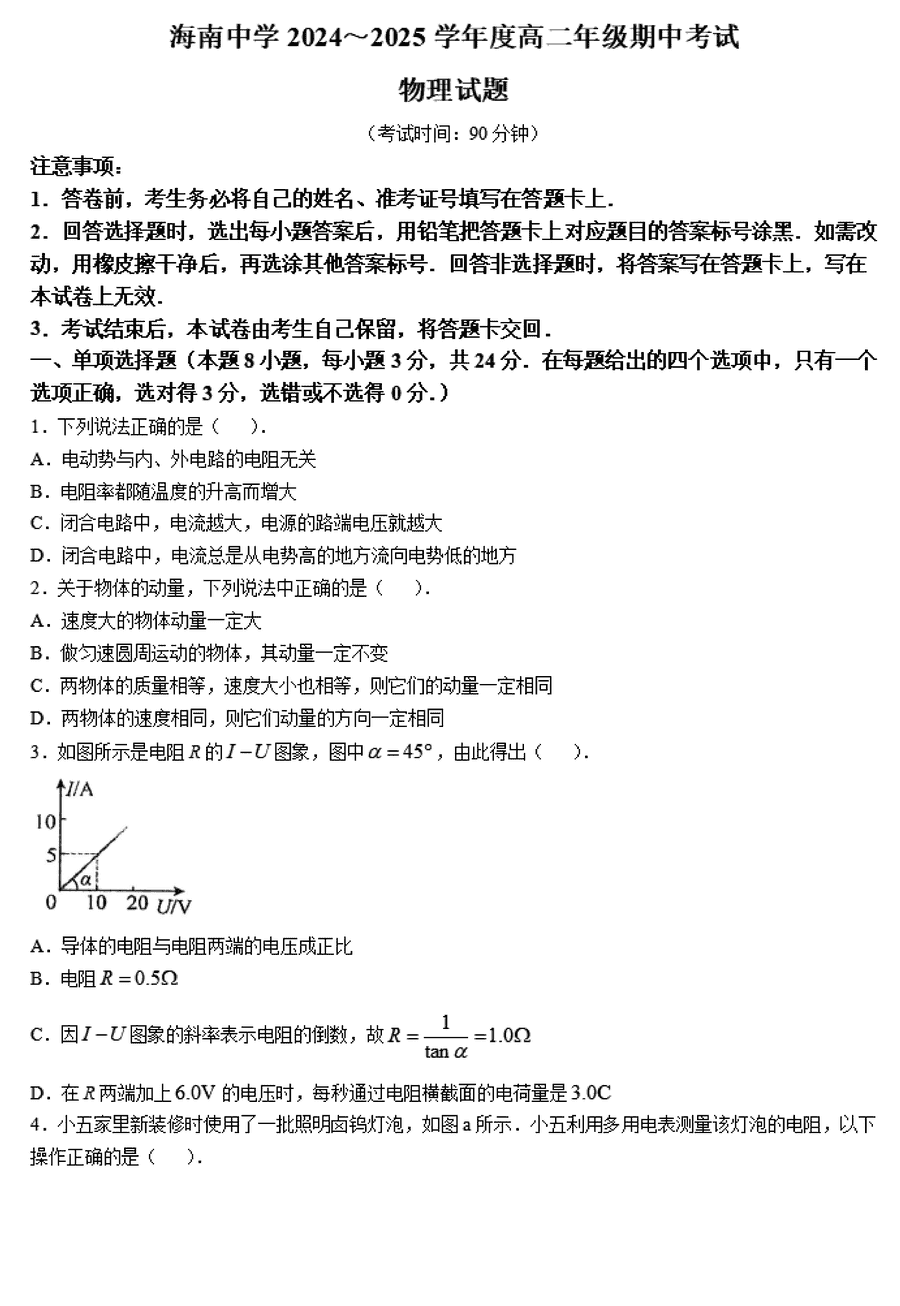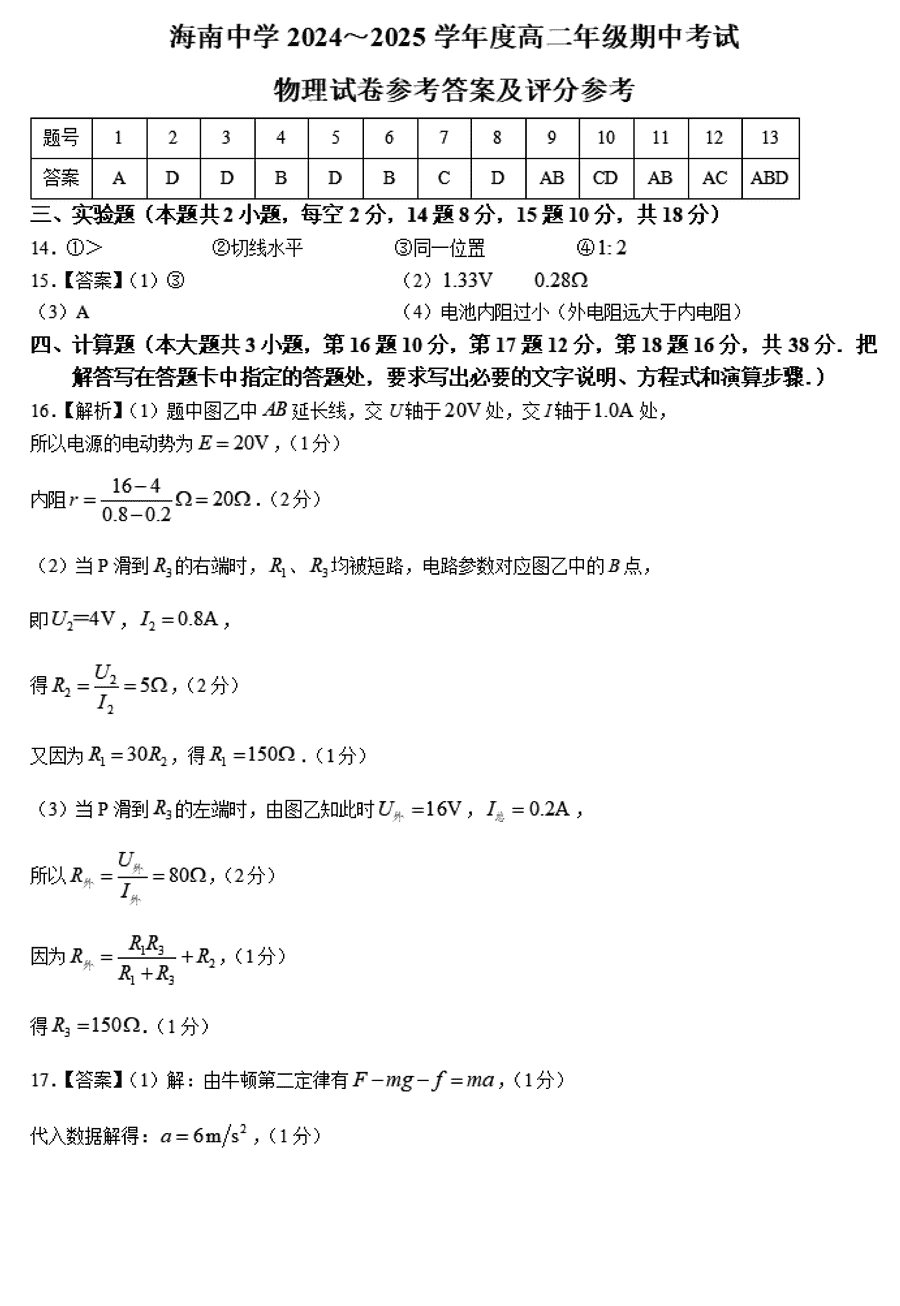 海南中学2024-2025学年高二上学期11月期中物理考试已于近日开考,为方便考生考后及时查看考试情况,查漏补缺、弥补不足,本文整理了试题答案解析相关信息!