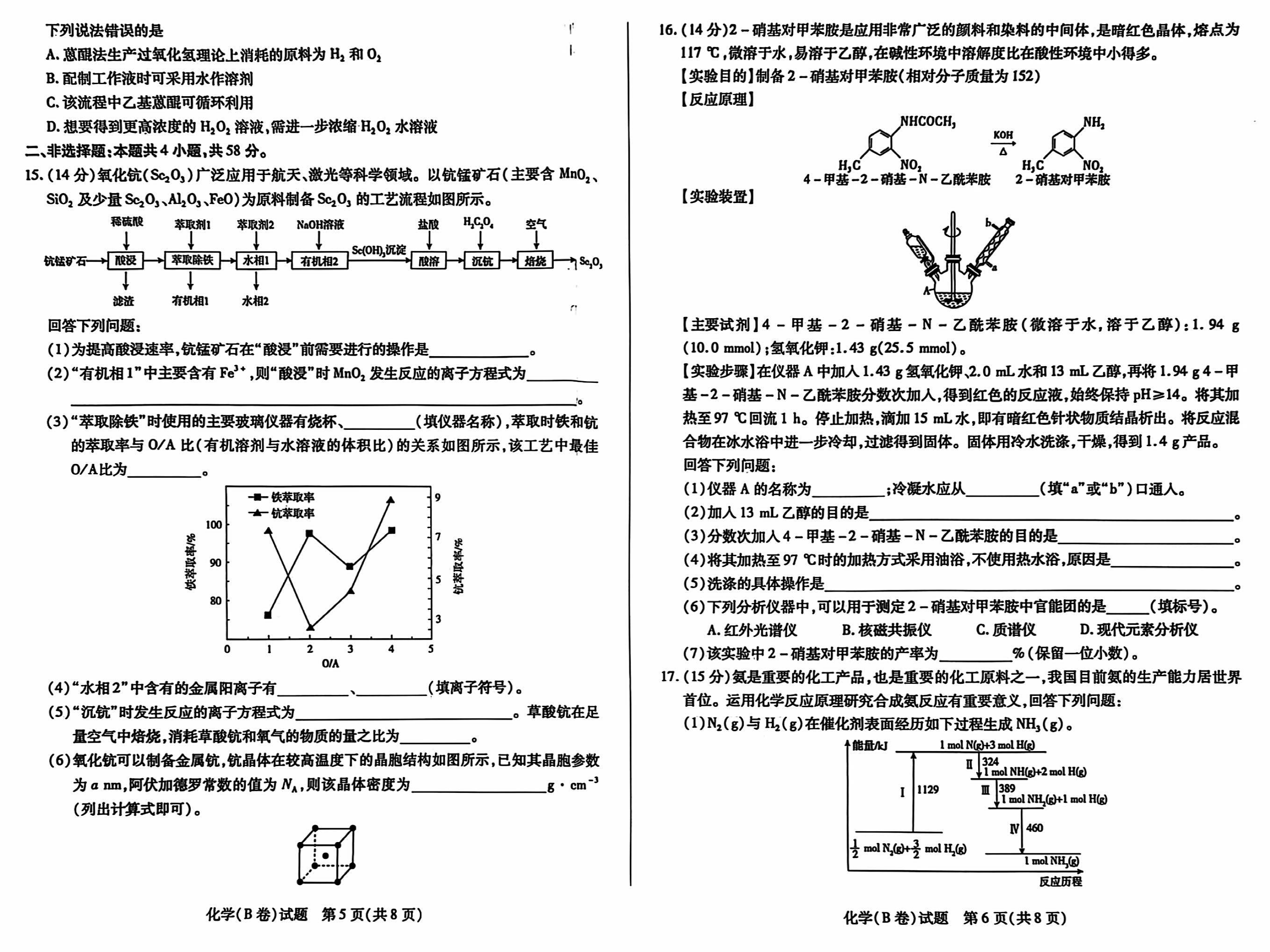 山西河南天一大联考2025届高三11月期中调研化学试题及答案