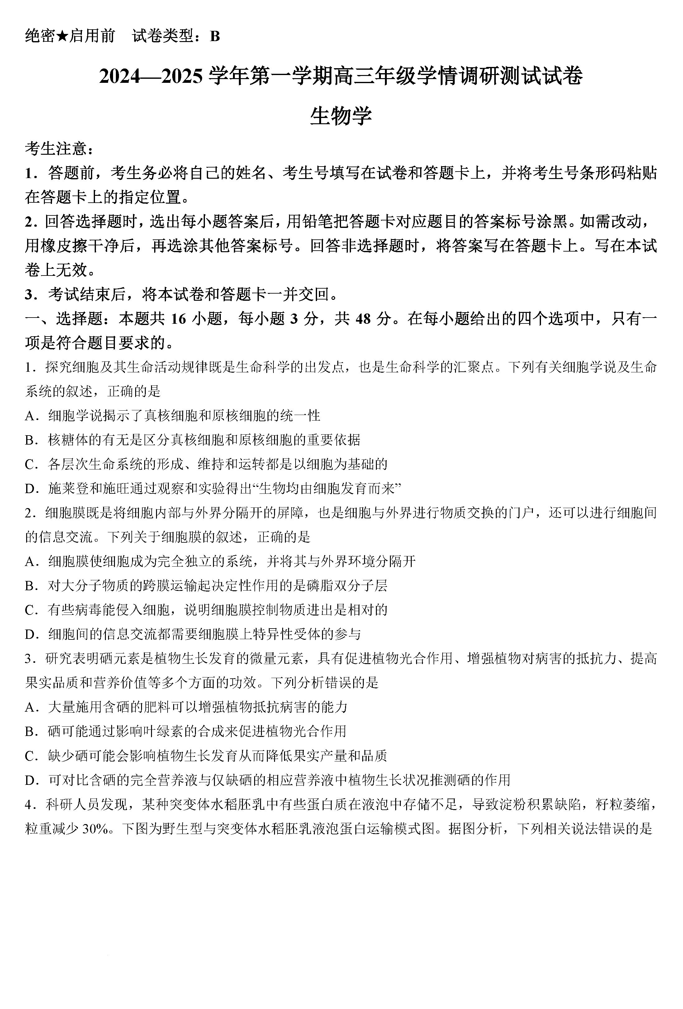 山西河南天一大联考2025届高三11月期中调研生物考试已于近日开考,为方便考生考后及时查看考试情况,查漏补缺、弥补不足,本文整理了试题答案解析相关信息!