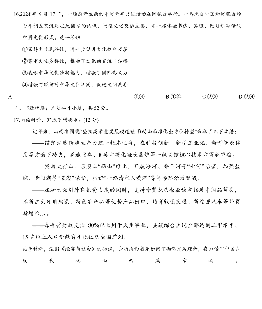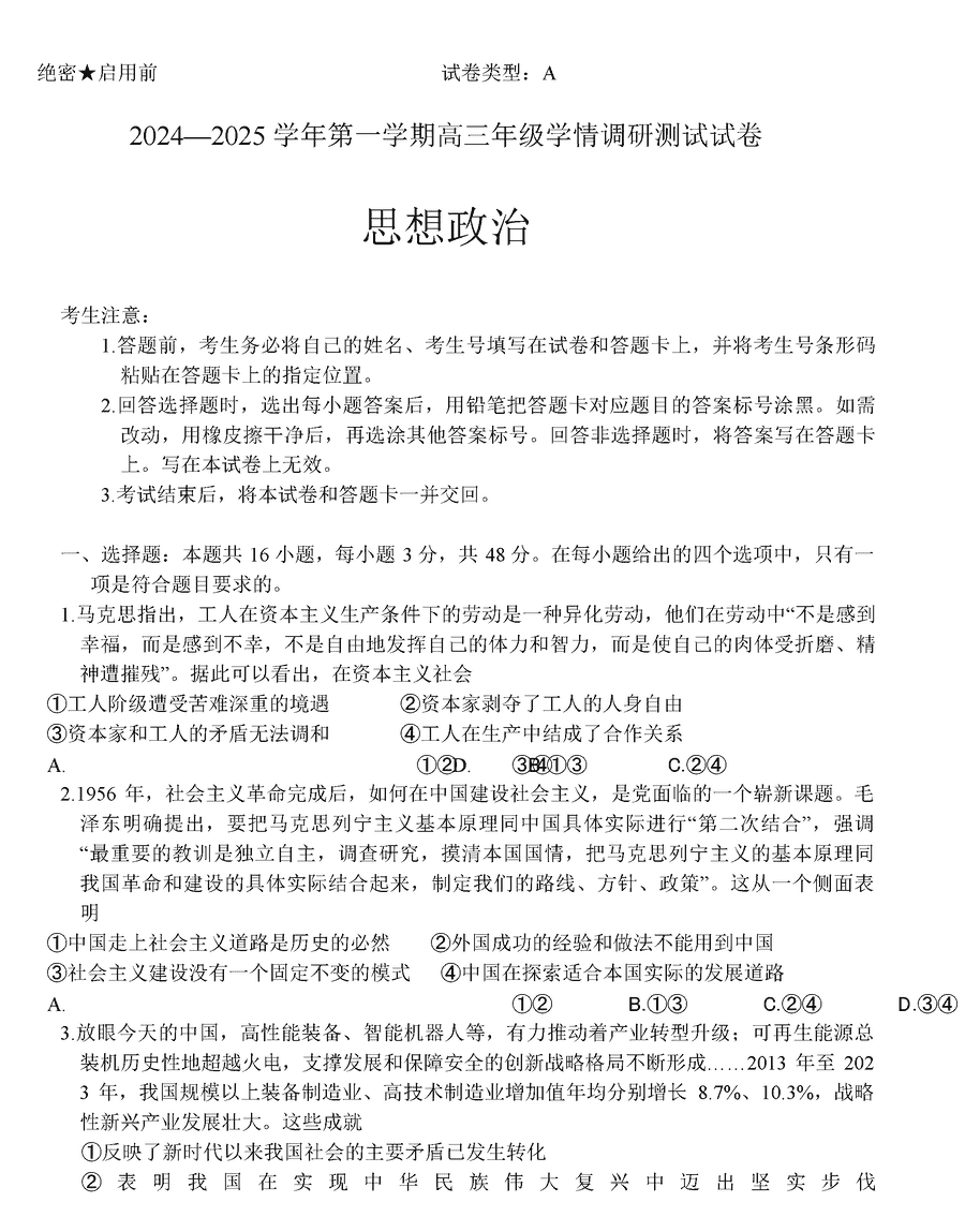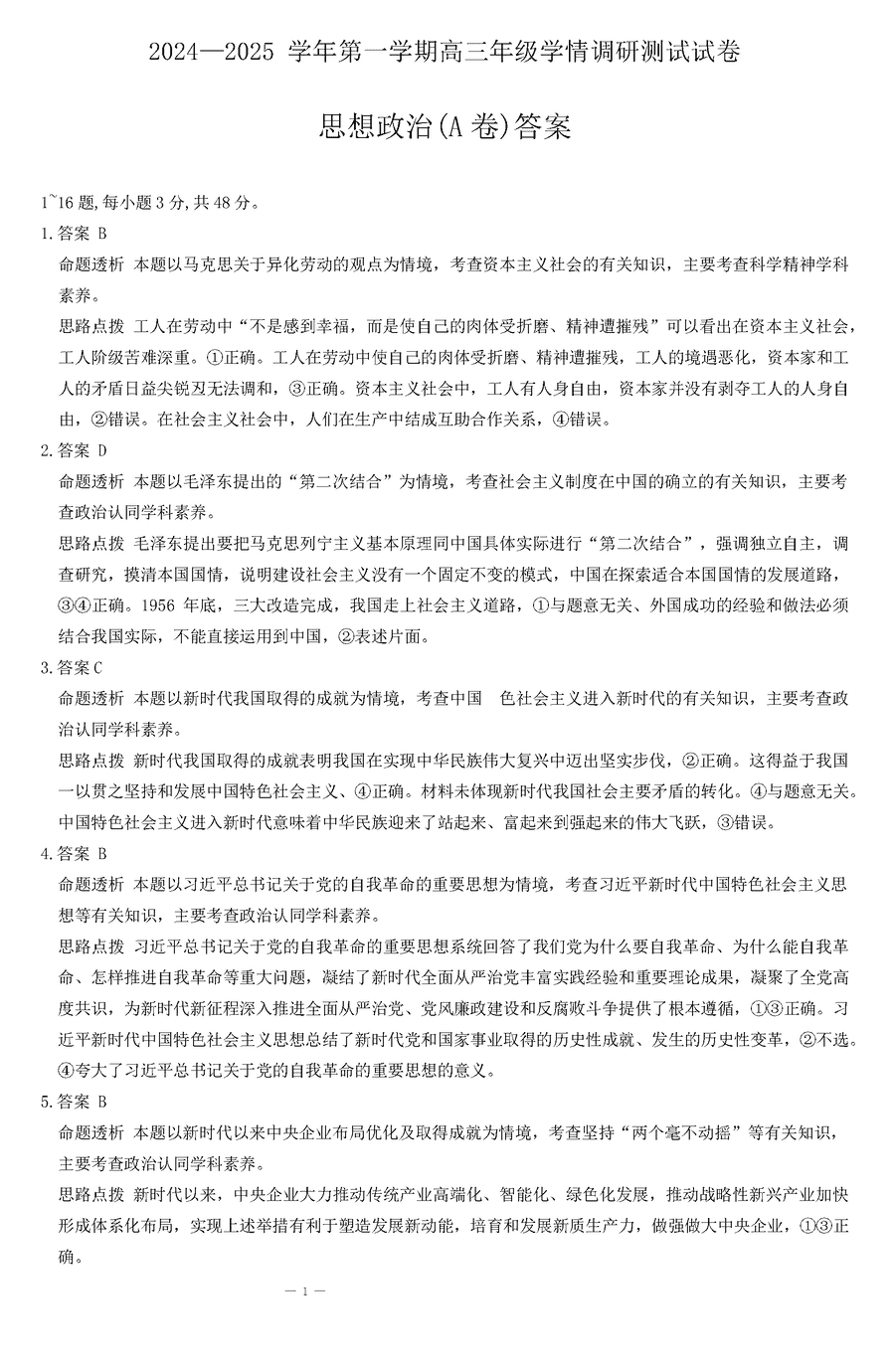 山西河南天一大联考2025届高三11月期中调研政治试题及答案
