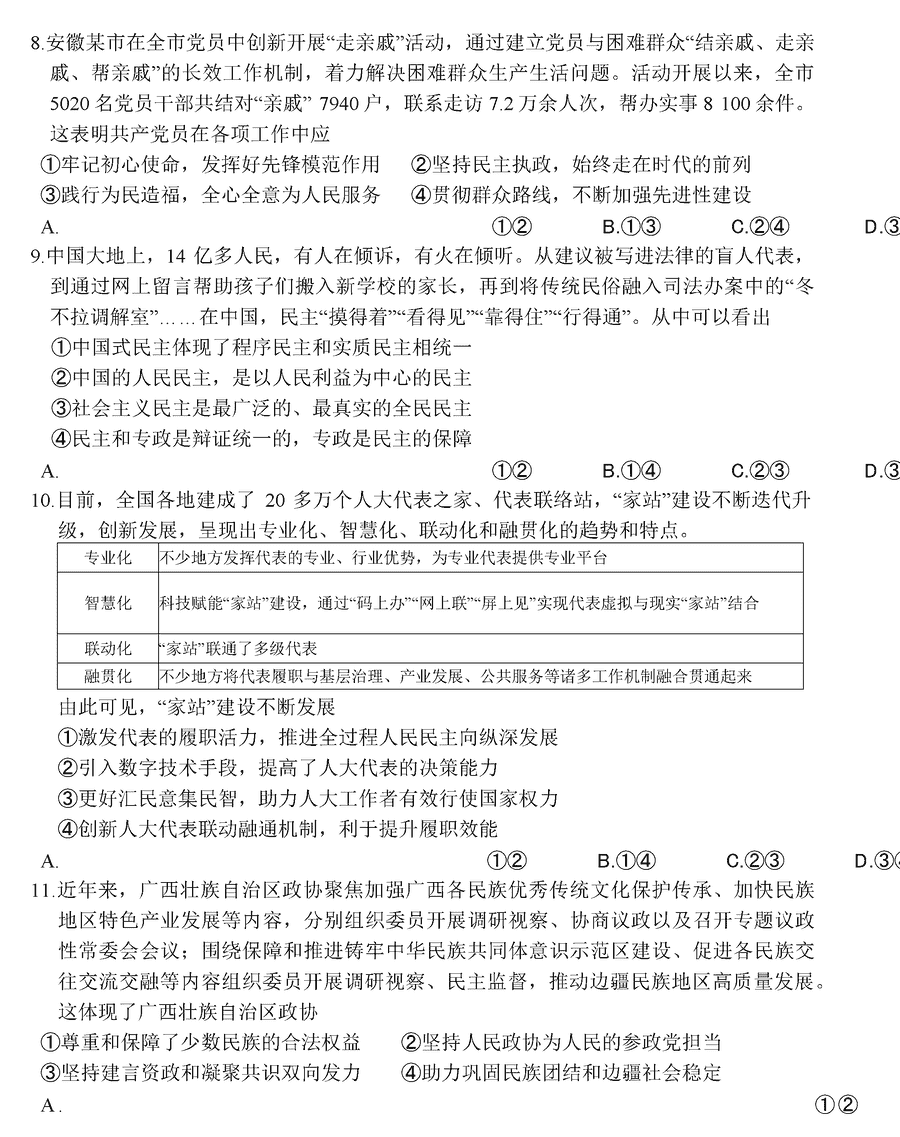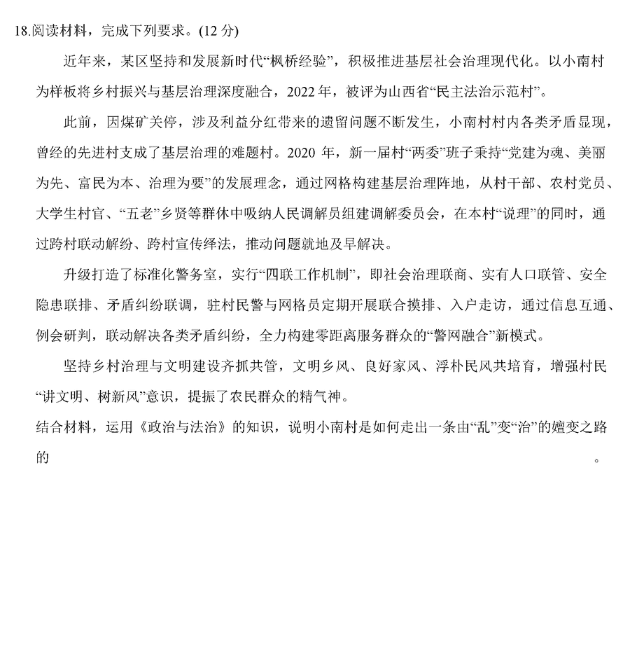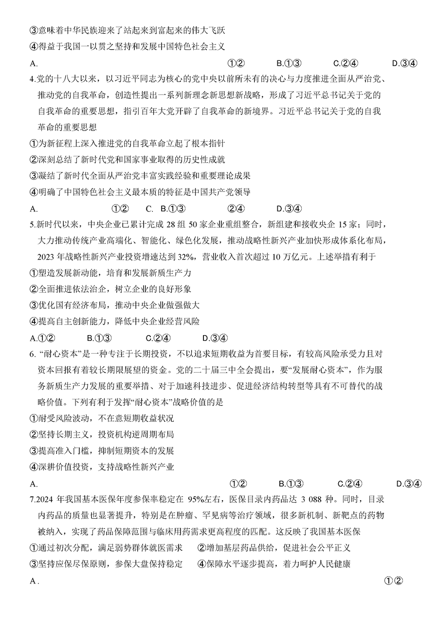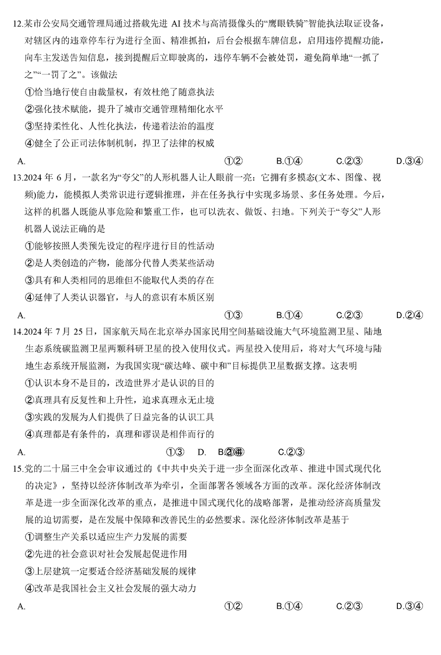 山西河南天一大联考2025届高三11月期中调研政治试题及答案