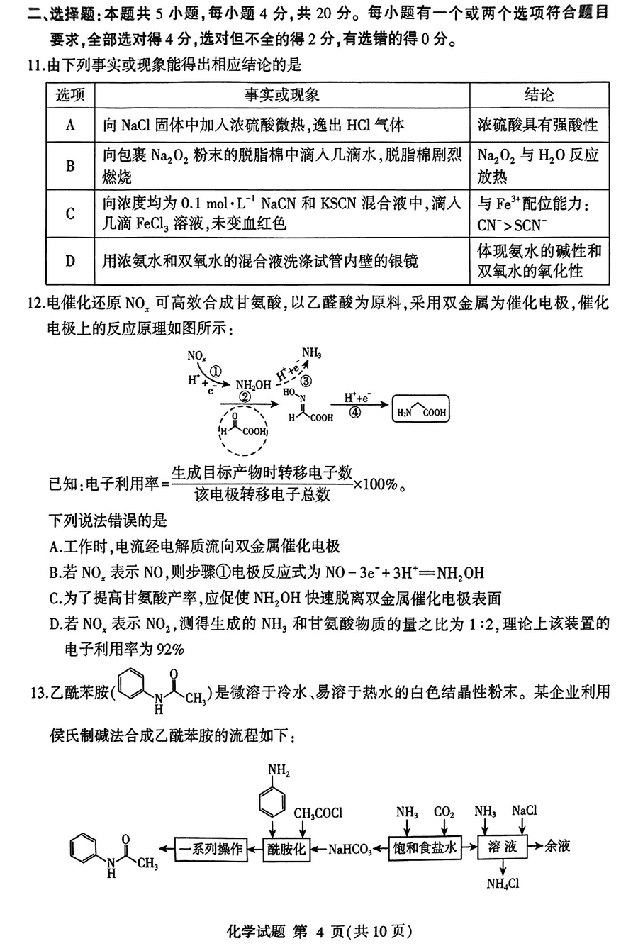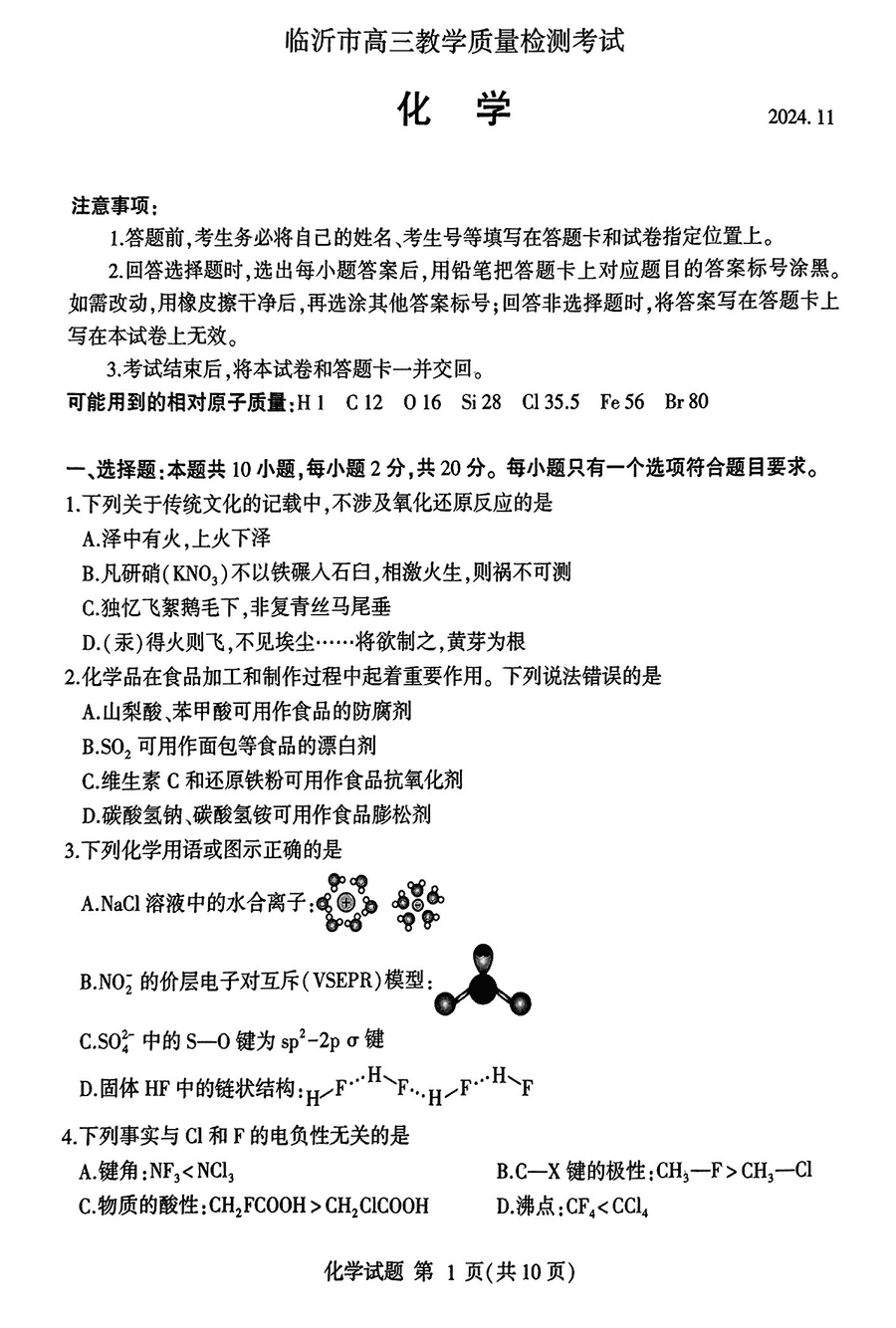 山东临沂2025届高三上学期11月期中质检化学试题及答案