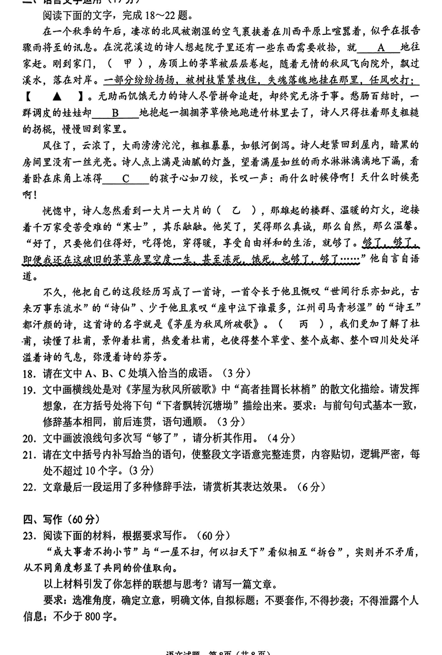 语文试题及答案解析