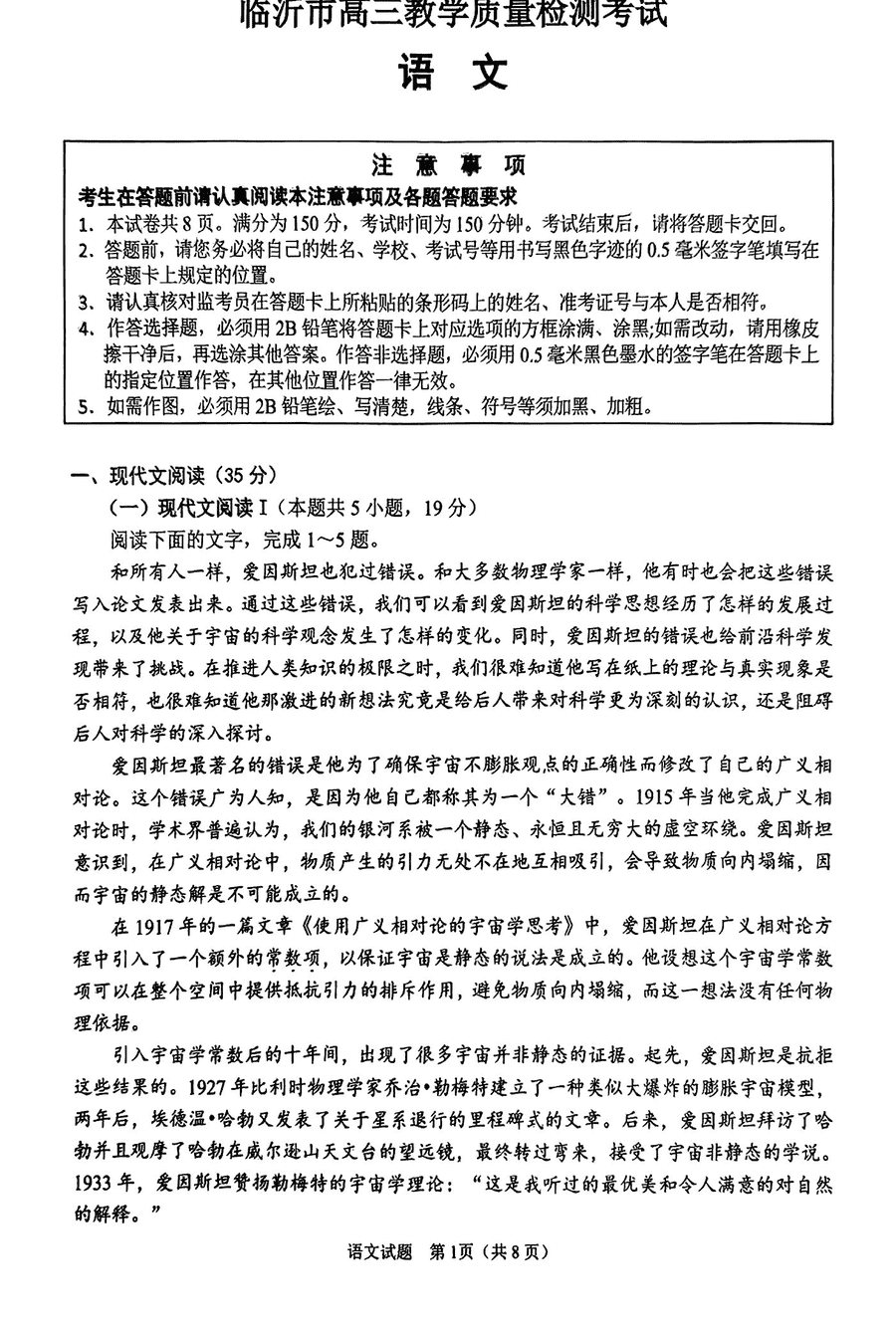 山东临沂2025届高三上学期11月期中质检语文考试已于近日开考,为方便考生考后及时查看考试情况,查漏补缺、弥补不足,本文整理了试题答案解析相关信息!