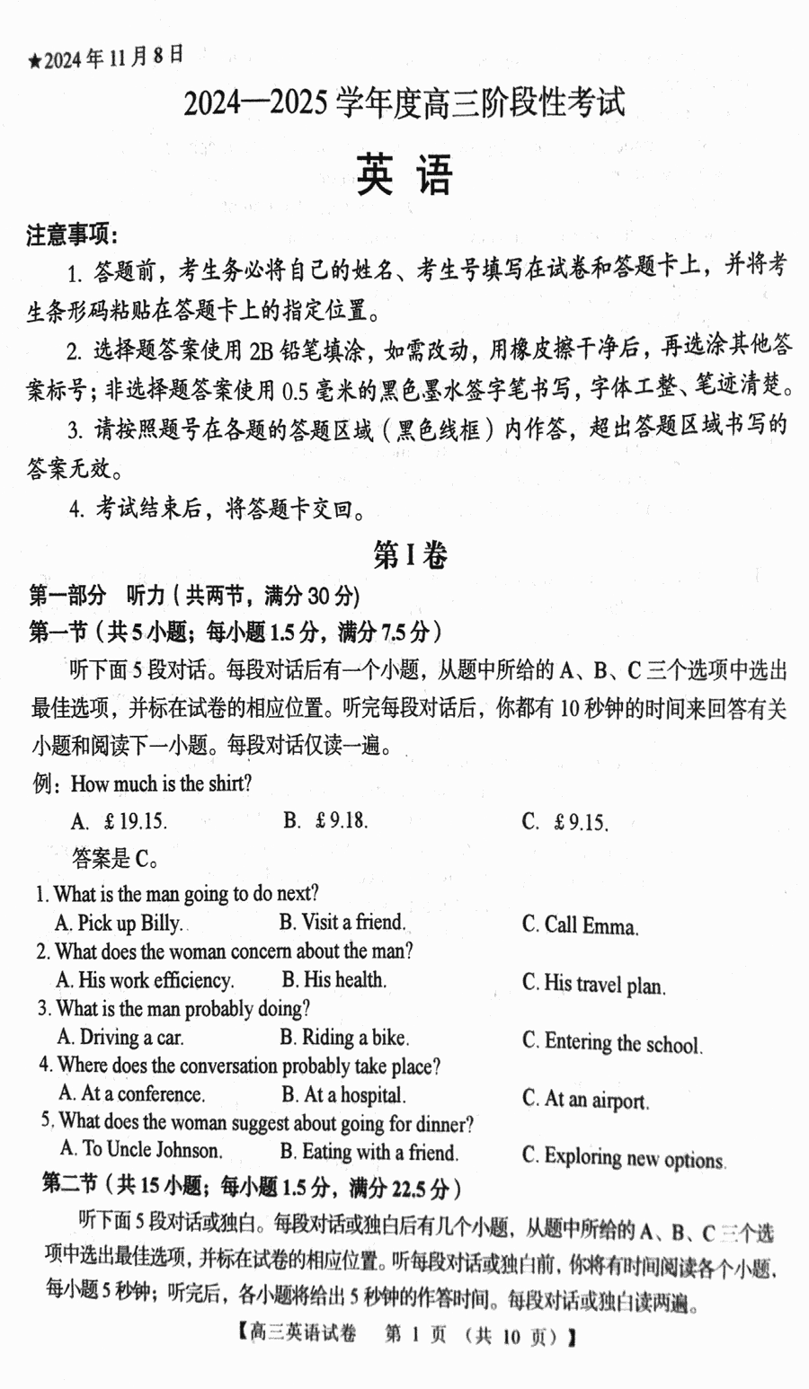 河南三门峡期中2024-2025学年高三上学期第三阶段考英语考试已于近日开考,为方便考生考后及时查看考试情况,查漏补缺、弥补不足,本文整理了试题答案解析相关信息!