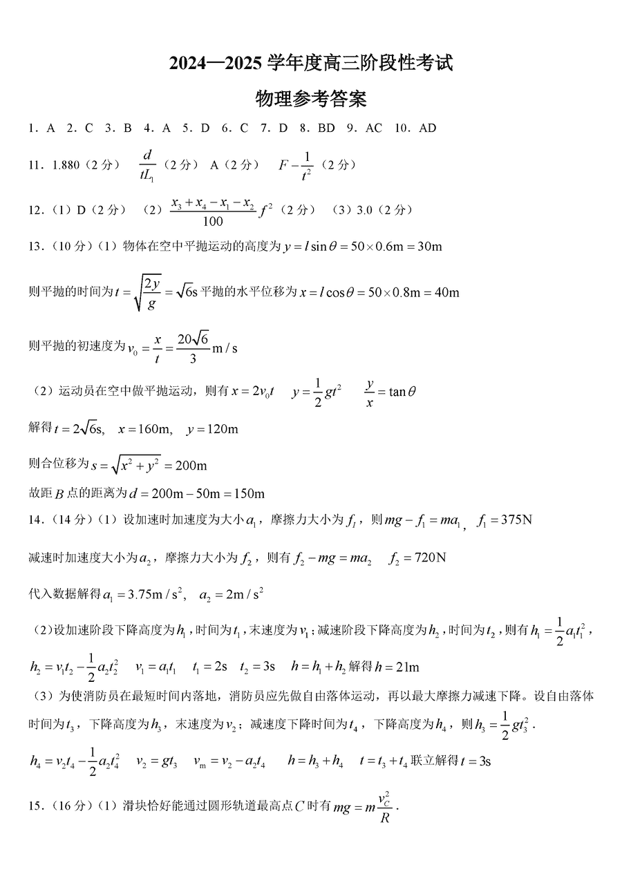 河南三门峡2024-2025学年高三上学期11月期中物理试题及答案