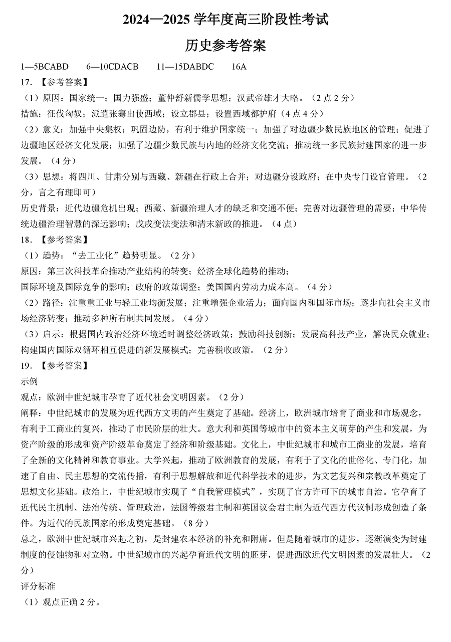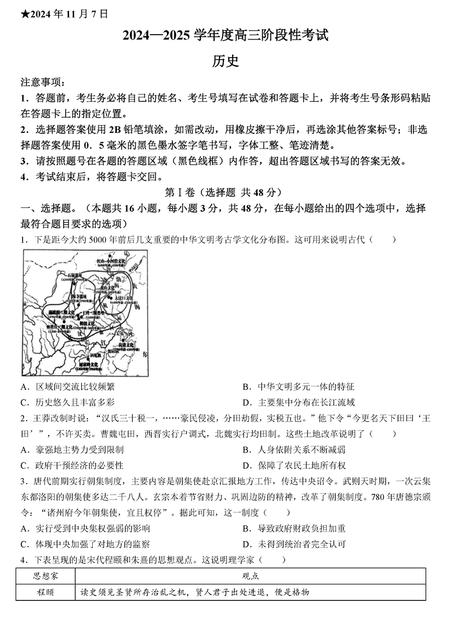 河南三门峡2024-2025学年高三上学期11月期中历史试题及答案
